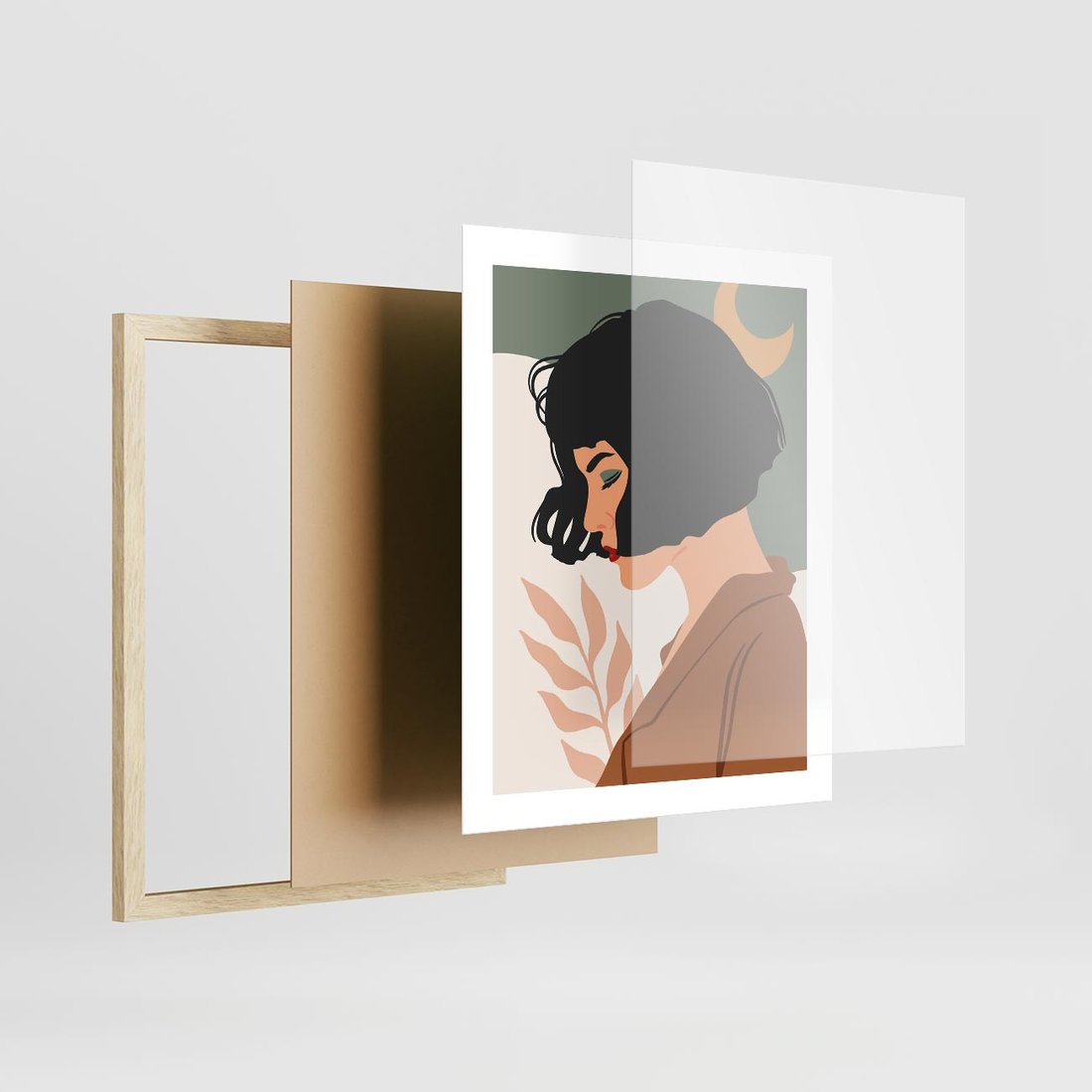 Odkryj urok nowoczesnego plakatu w stylu retro, prezentującego delikatny portret kobiety w stonowanych, subtelnych kolorach. To artystyczne połączenie przeszłości i współczesności, tworzące elegancką kompozycję pełną wyrafinowanego uroku.