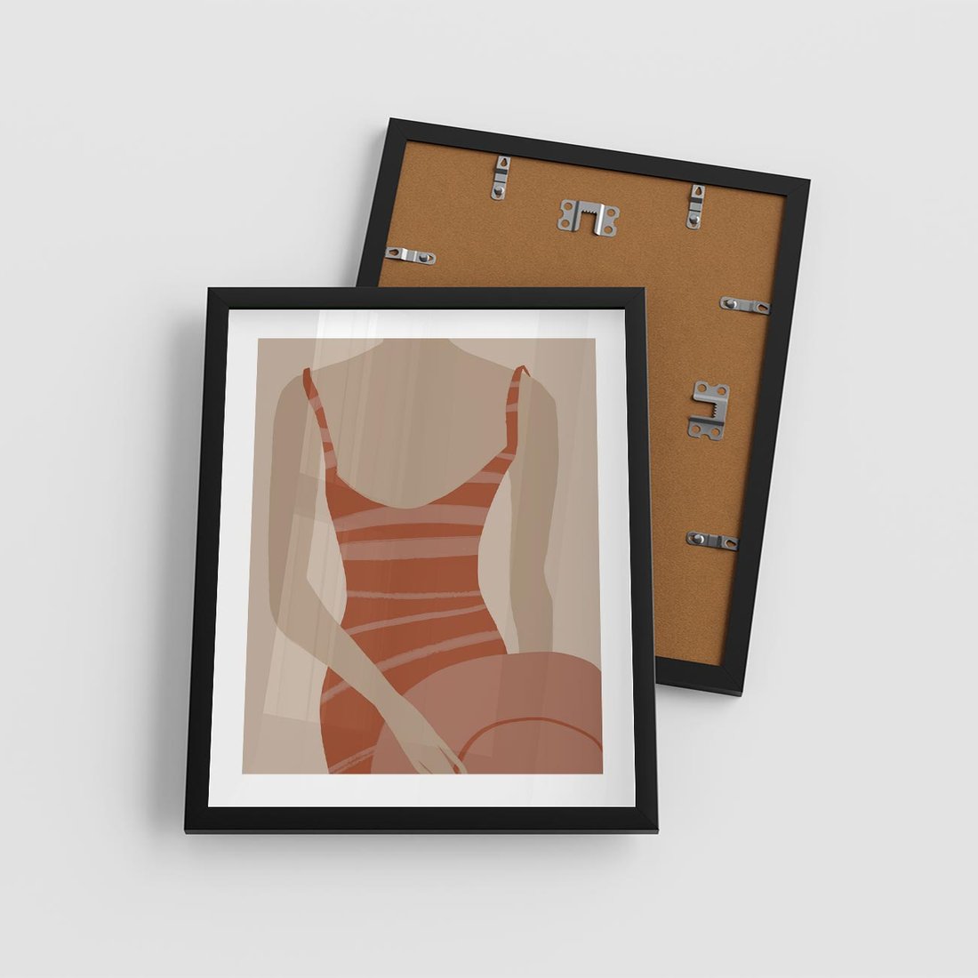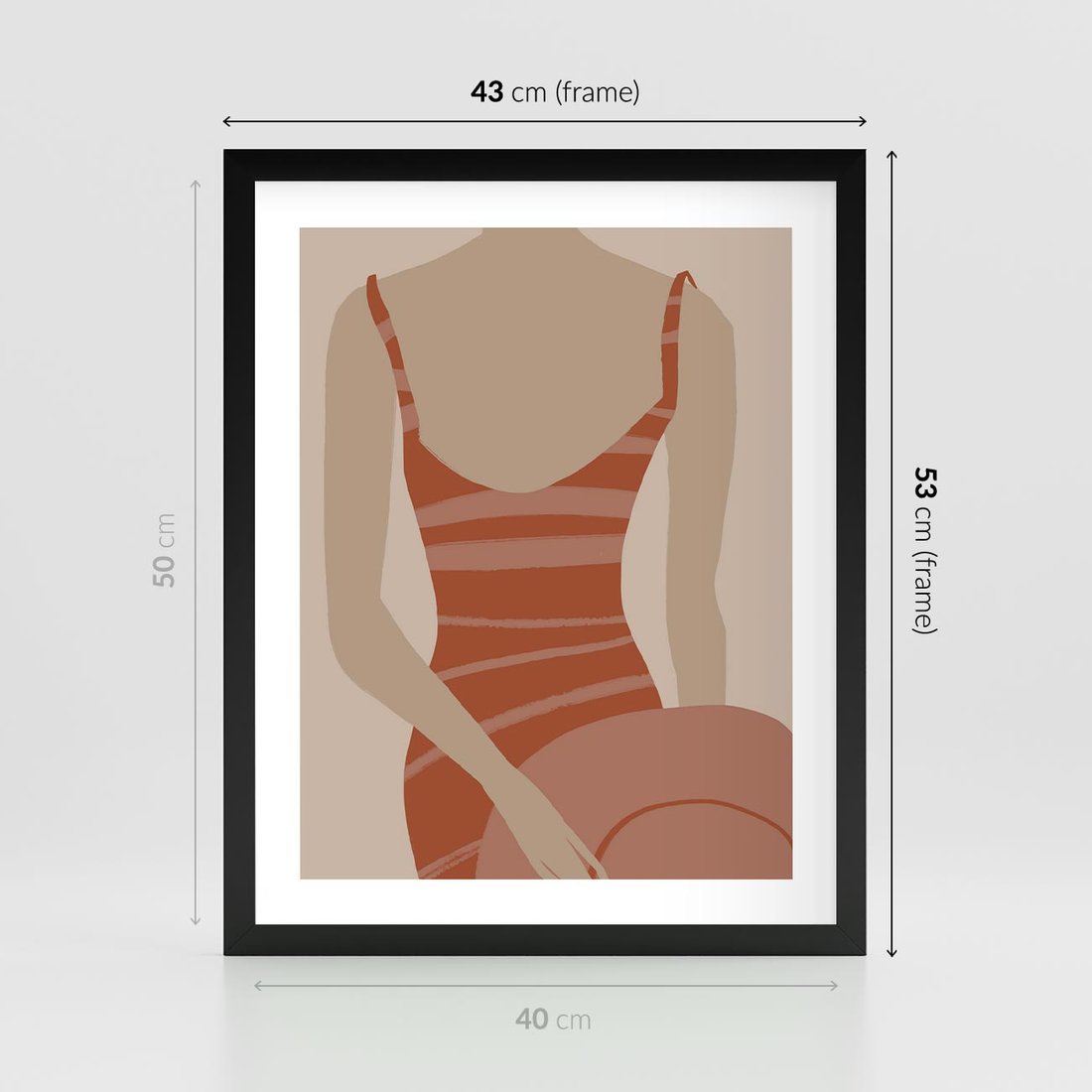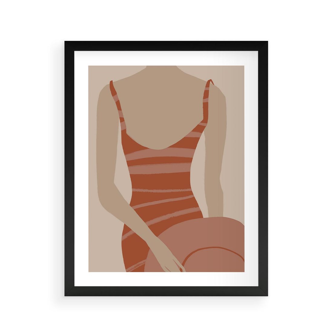 Plakat w ramie 40x50 - Kobiece Retro - minimalistyczny boho plakat, retro kobieta w stroju kąpielowym - rama czarna