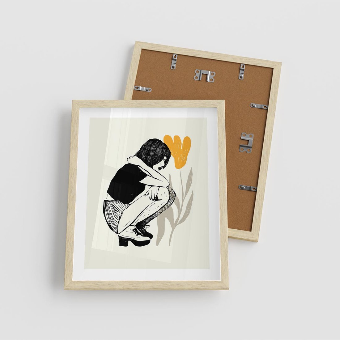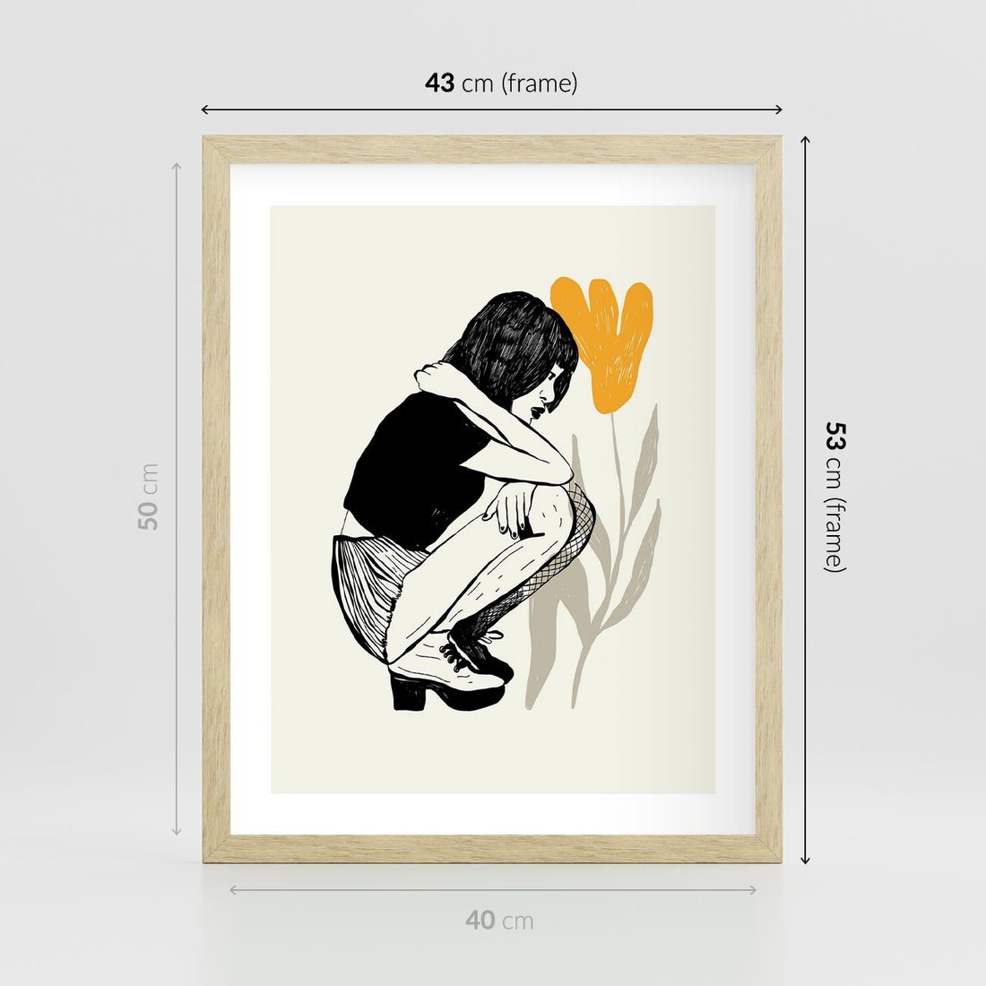 Plakat w ramie 40x50 - Kobiecy Plakat - prosta grafika, kobieta - rama drewno