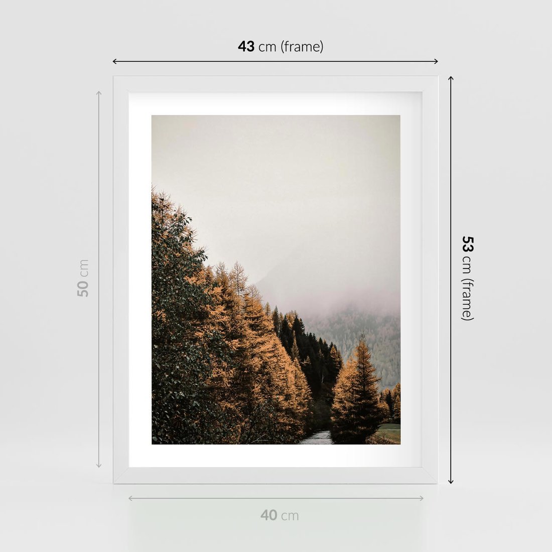 Plakat w ramie 40x50 - Kolorowa Jesień w Górskim Lesie - las, jesień - rama biała