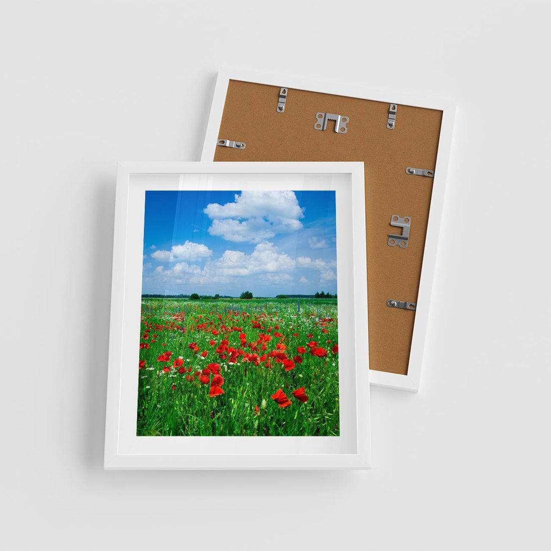 Plakat w ramie 40x50 - Kolorowa łąka pełna maku - łąka, maki - rama biała