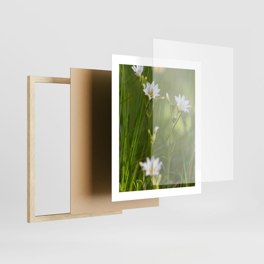Plakat w ramie 40x50 - Kolorowa łąka - stokrotki, łąka - rama drewno