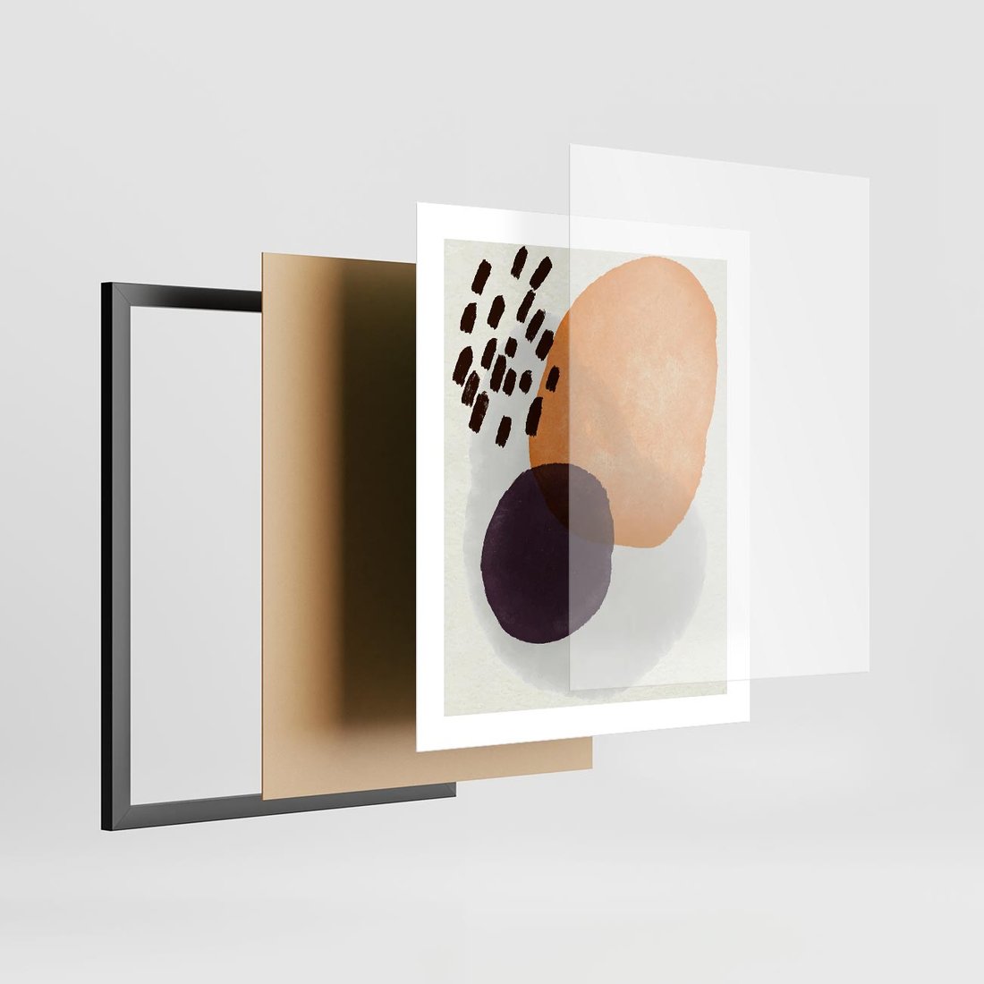 Nasz plakat łączy geometryczne elementy w stonowanych, ziemistych kolorach, tworząc fascynującą abstrakcję. To wyraz artystycznej ekspresji, który wprowadzi do Twojej przestrzeni unikalny charakter i subtelny wyrafinowany wygląd.