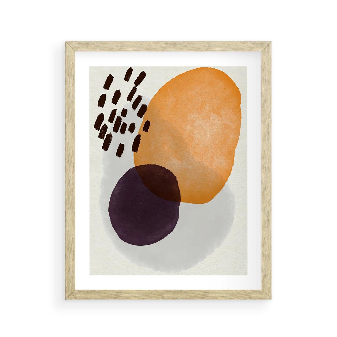 Plakat w ramie 40x50 - Kolorowe Akwarelowe Przenikanie - geometryczne elementy, stonowane ziemiste kolory - rama drewno