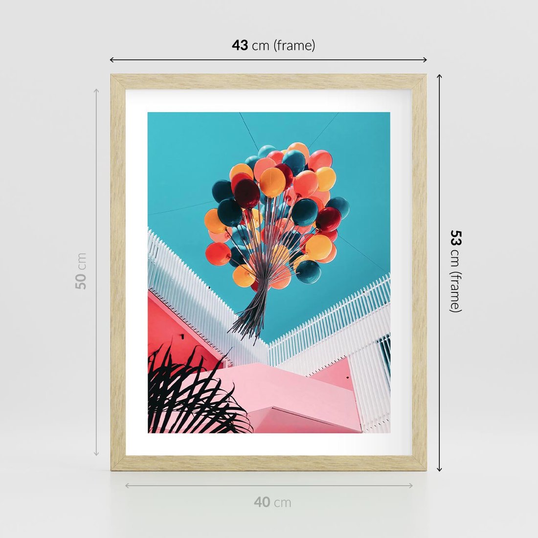 Plakat w ramie 40x50 - Kolorowe Balony Pod Niebem - kolorowe balony na tle niebieskiego nieba - rama drewno