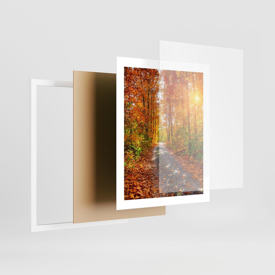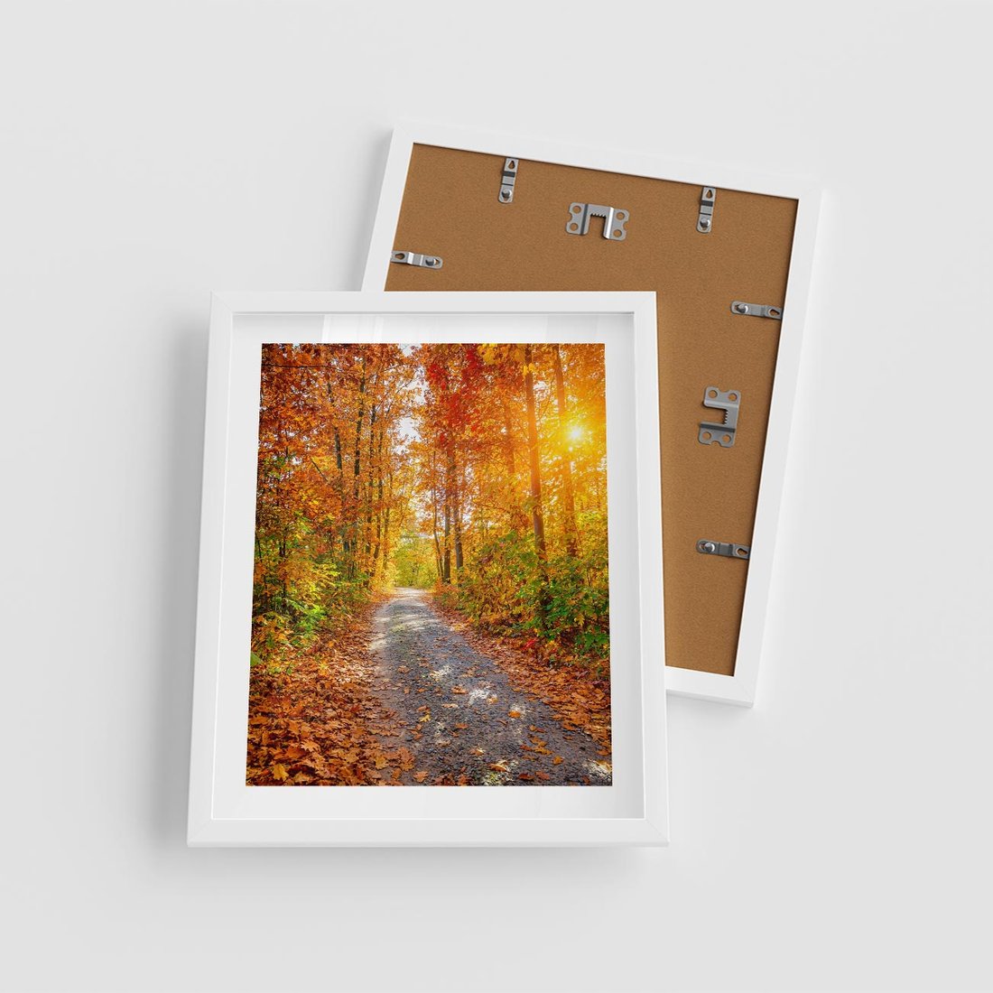 Plakat w ramie 40x50 - Kolorowe drzewa na ścieżce jesieni - las, jesień - rama biała