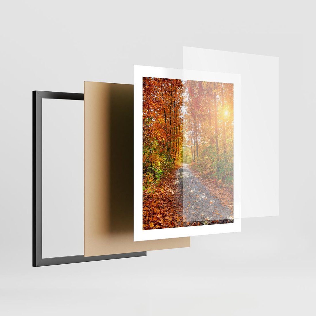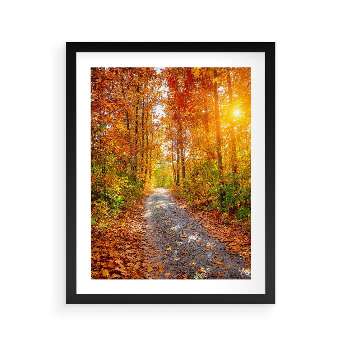 Plakat w ramie 40x50 - Kolorowe drzewa na ścieżce jesieni - las, jesień - rama czarna