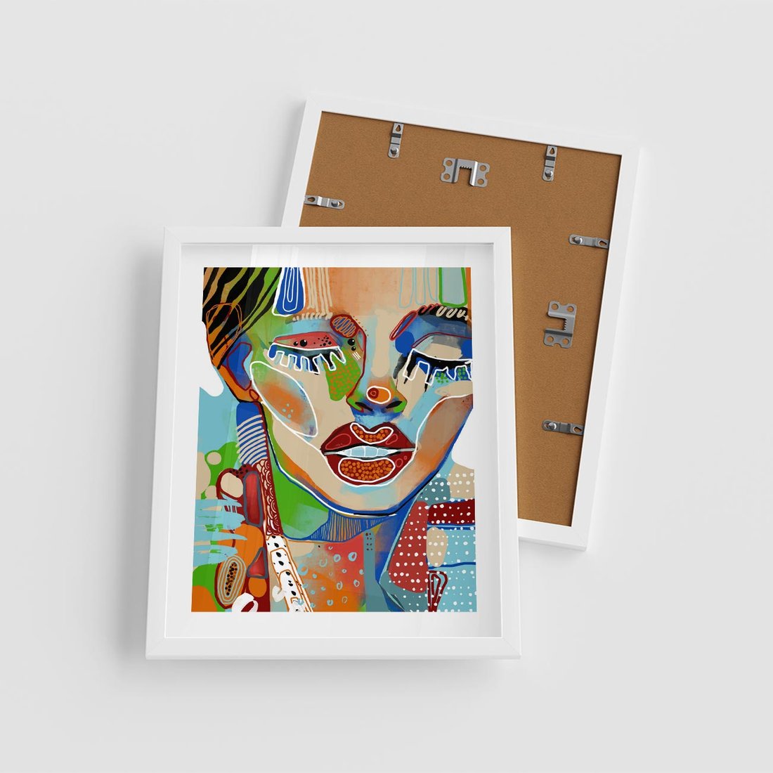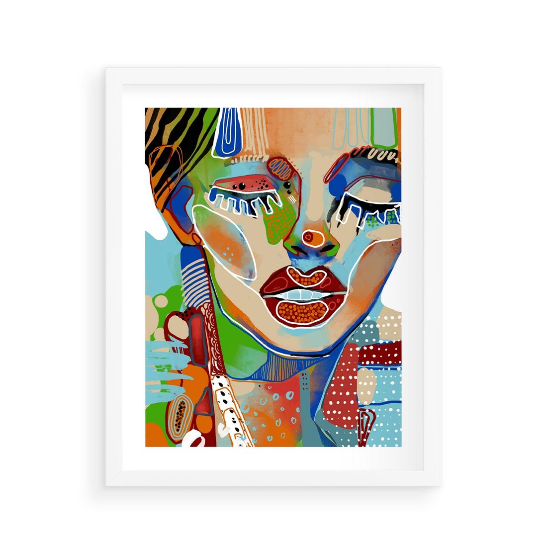 Plakat w ramie 40x50 - Kolorowe Formy - abstrakcyjny portret kobiety, twarz - rama biała