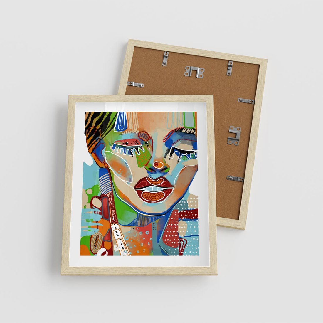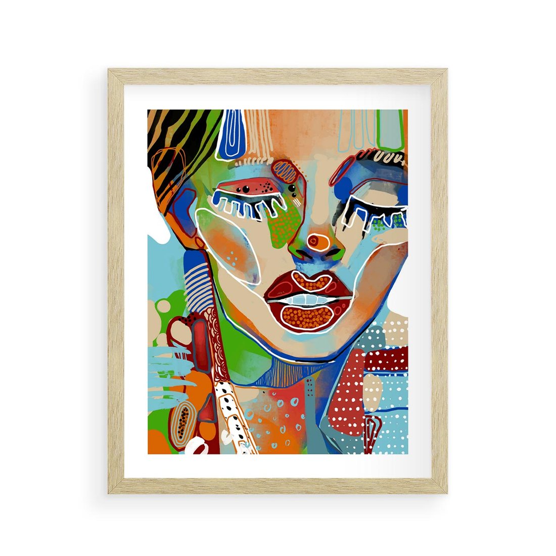 Plakat w ramie 40x50 - Kolorowe Formy - abstrakcyjny portret kobiety, twarz - rama drewno