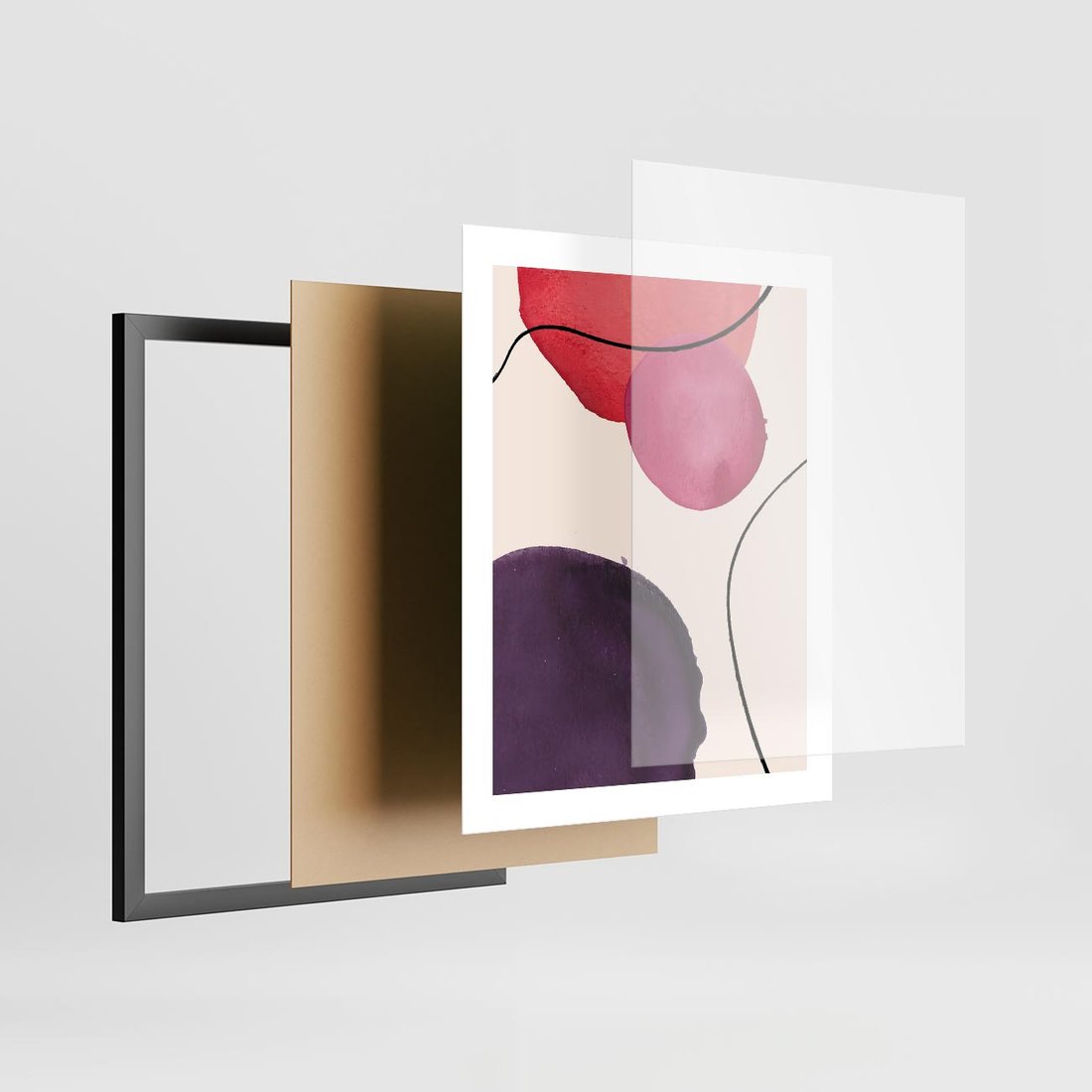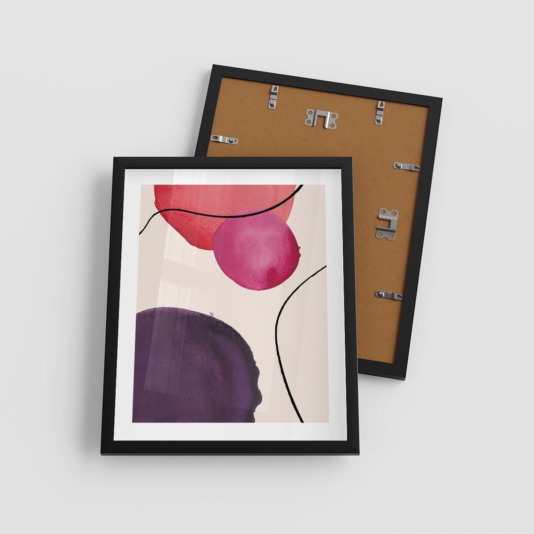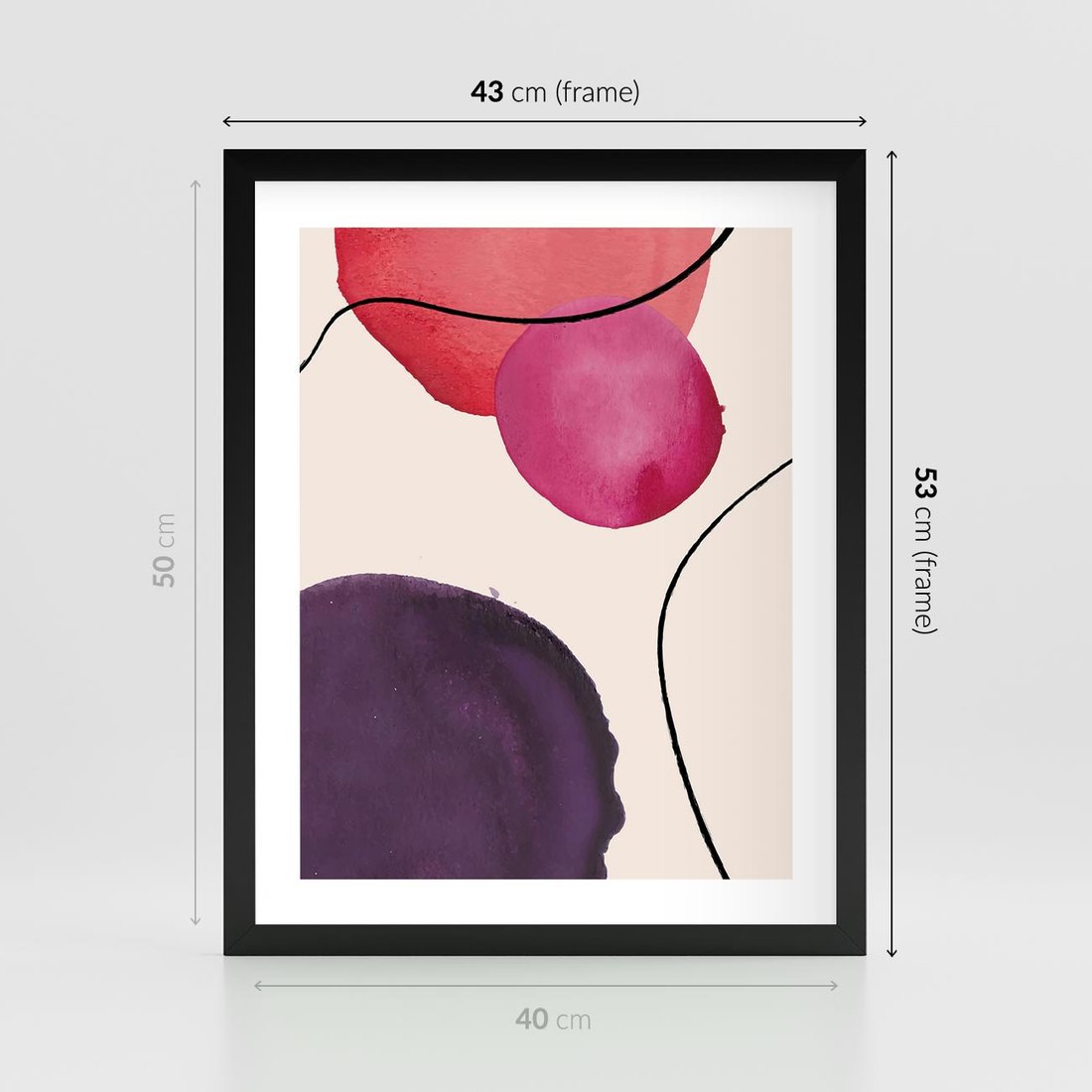 Plakat w ramie 40x50 - Kolorowe Impresje - abstrakcyjne akwarelowe plamy, nieregularne linie - rama czarna
