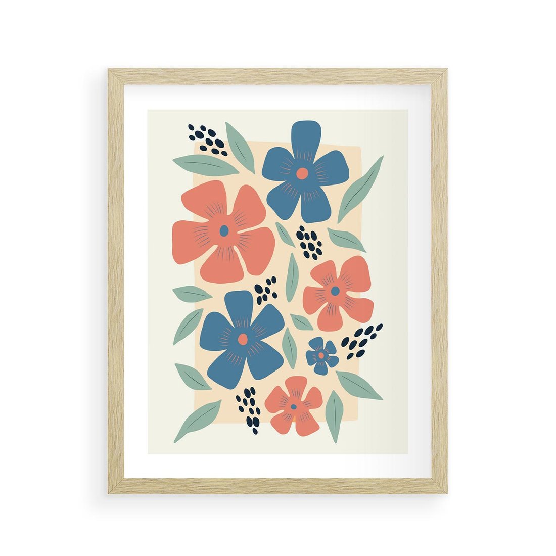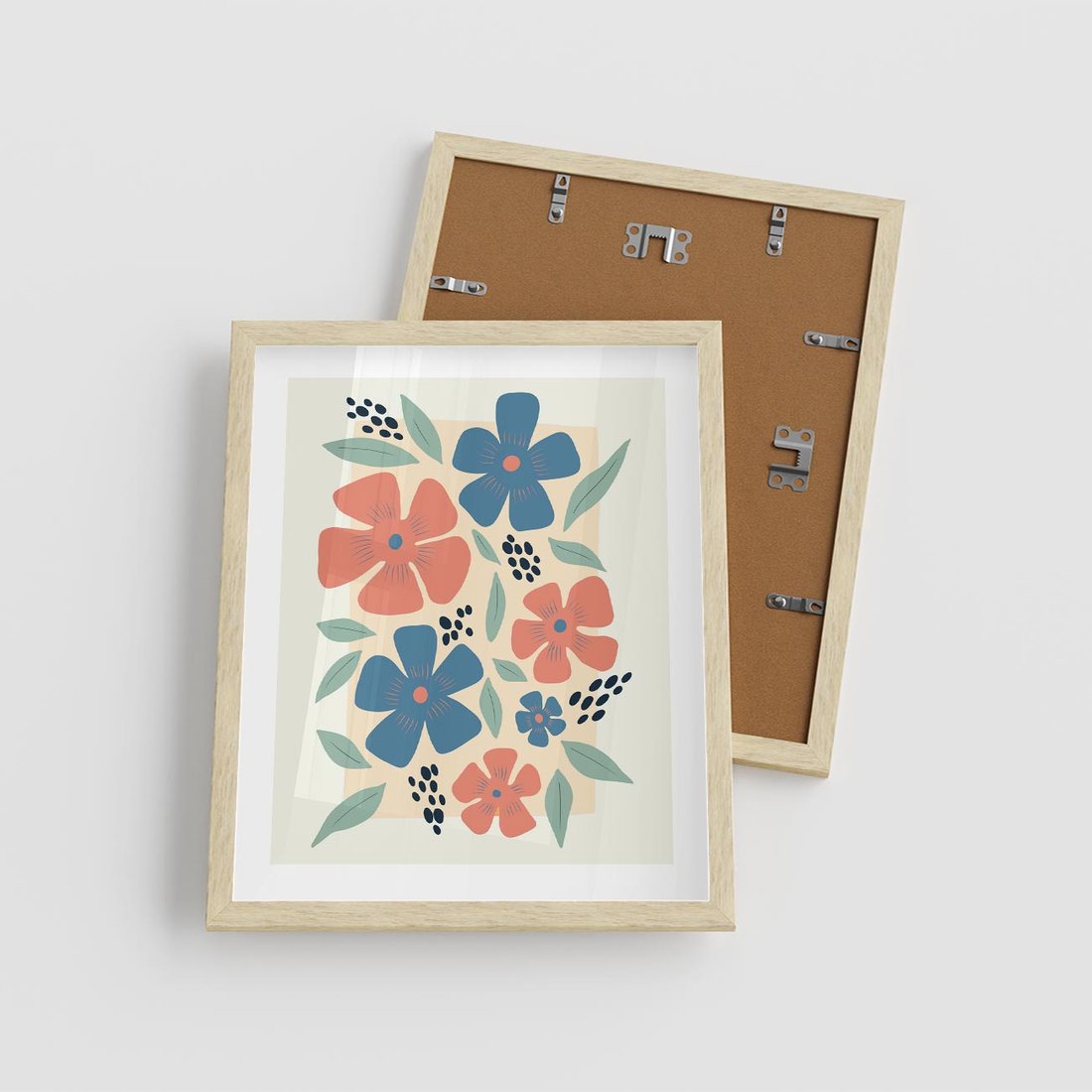 Ten minimalistyczny plakat przedstawia pastelowe kwiaty w prostej i harmonijnej kompozycji. To obraz, który emanuje spokojem i subtelnym pięknem natury. Idealny sposób na wprowadzenie delikatnych kwiatowych akcentów do wnętrza, zachowując jednocześnie estetykę minimalistycznego designu.