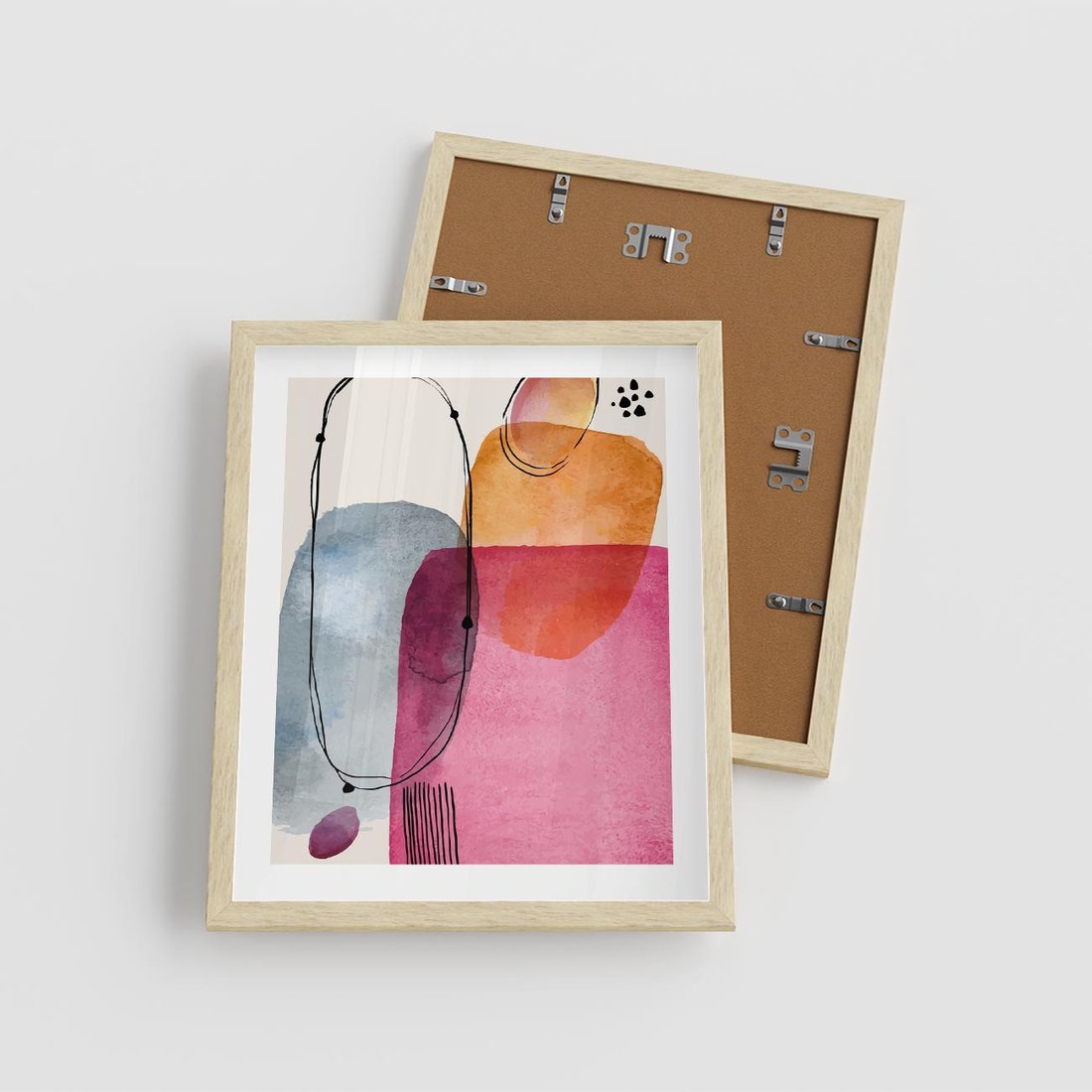 Kolorowe pastelowe plamy w rozmytych, żywych odcieniach, zdobione delikatnymi szlaczkami. To minimalistyczne dzieło sztuki, które wprowadza wibrację i subtelność do Twojej przestrzeni, tworząc kompozycję pełną wyrafinowanego minimalizmu.