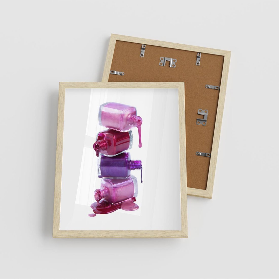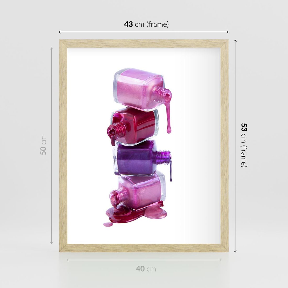 Plakat w ramie 40x50 - Kolorowe Paznokcie - lakiery, do paznokci - rama drewno