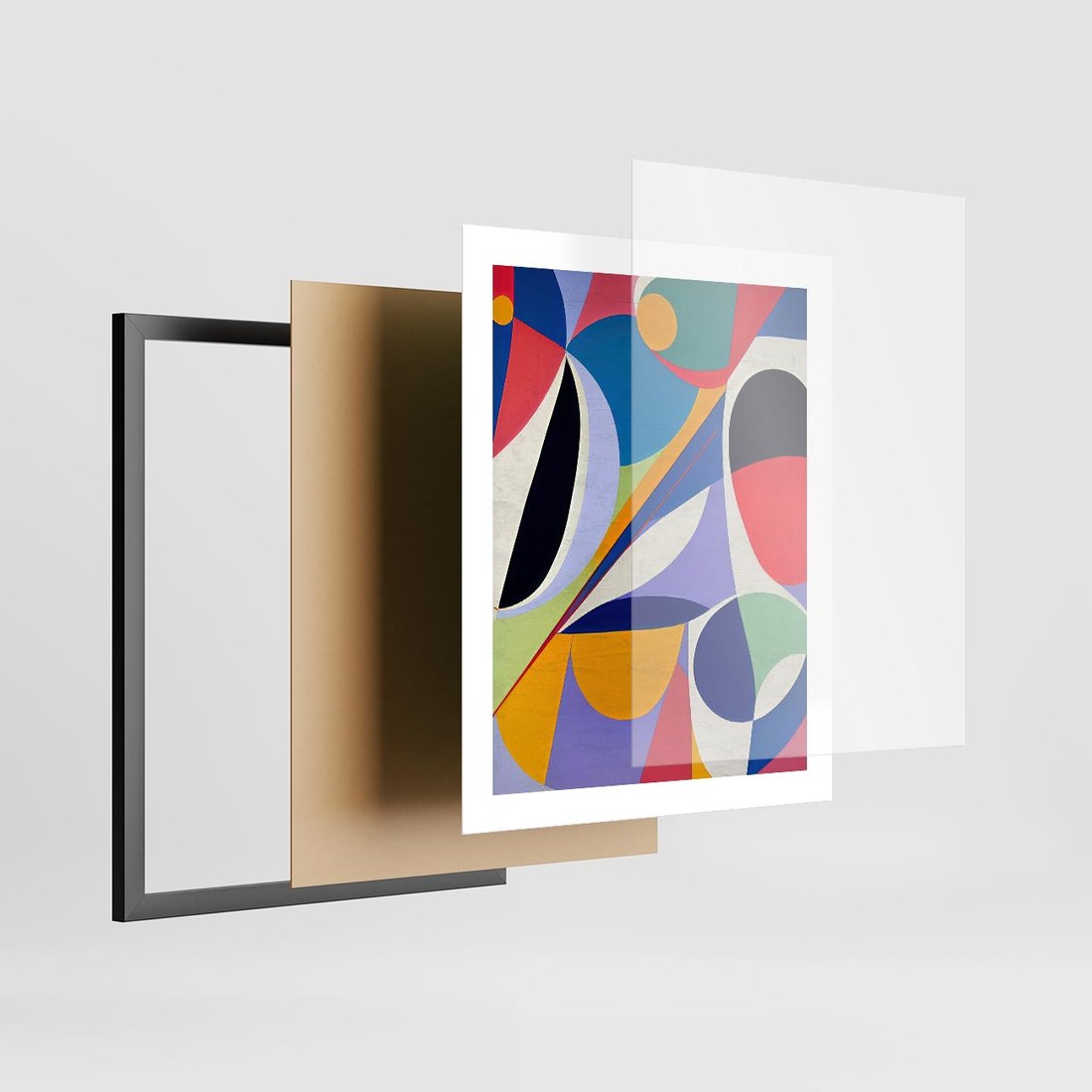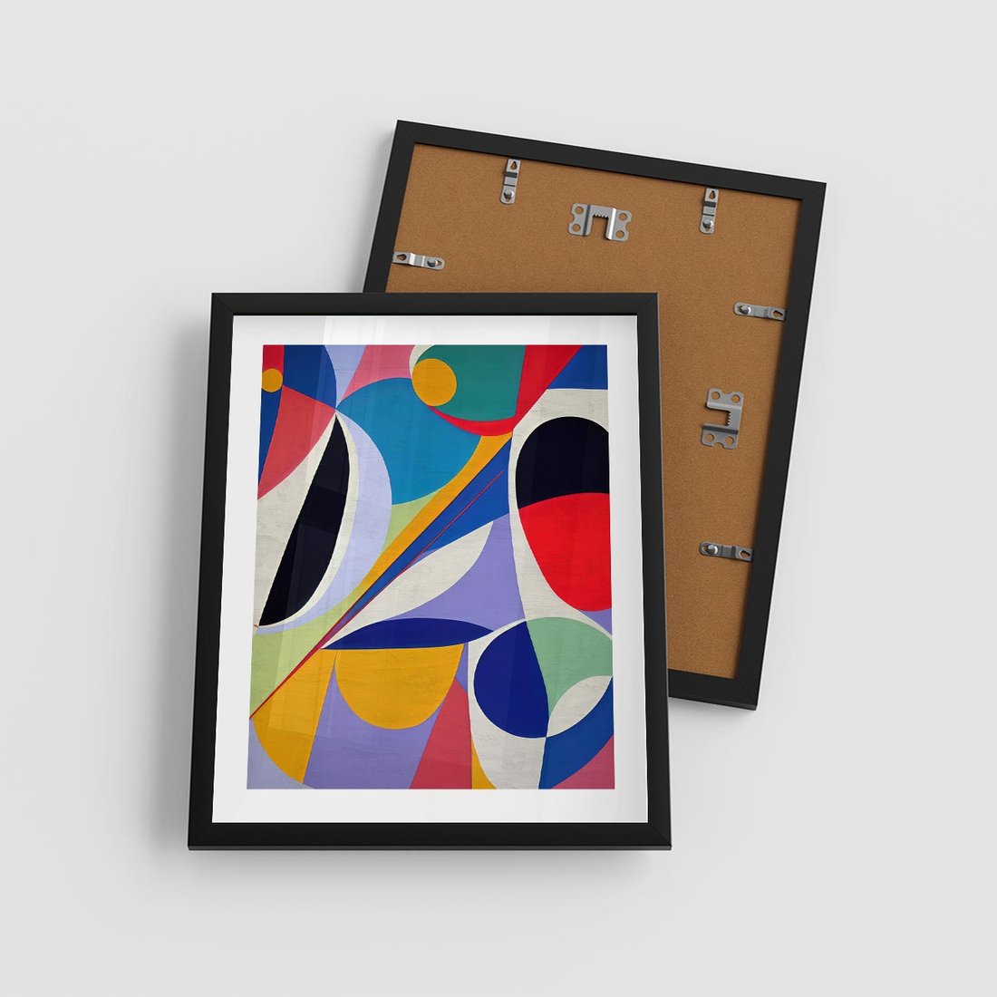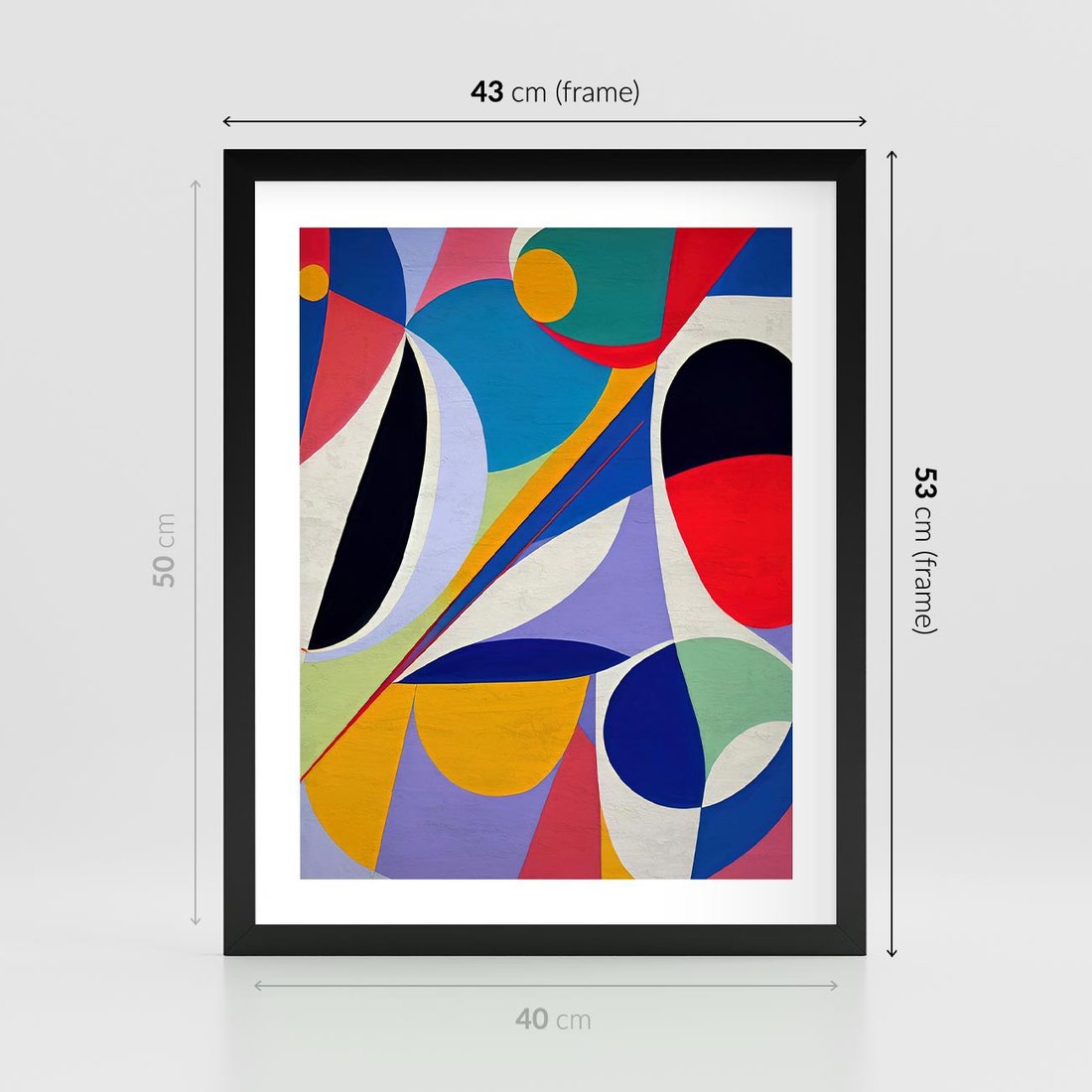 Plakat w ramie 40x50 - Kolorowe Przesunięcia Kształtów - abstrakcyjny obraz olejny, żywe kolory - rama czarna