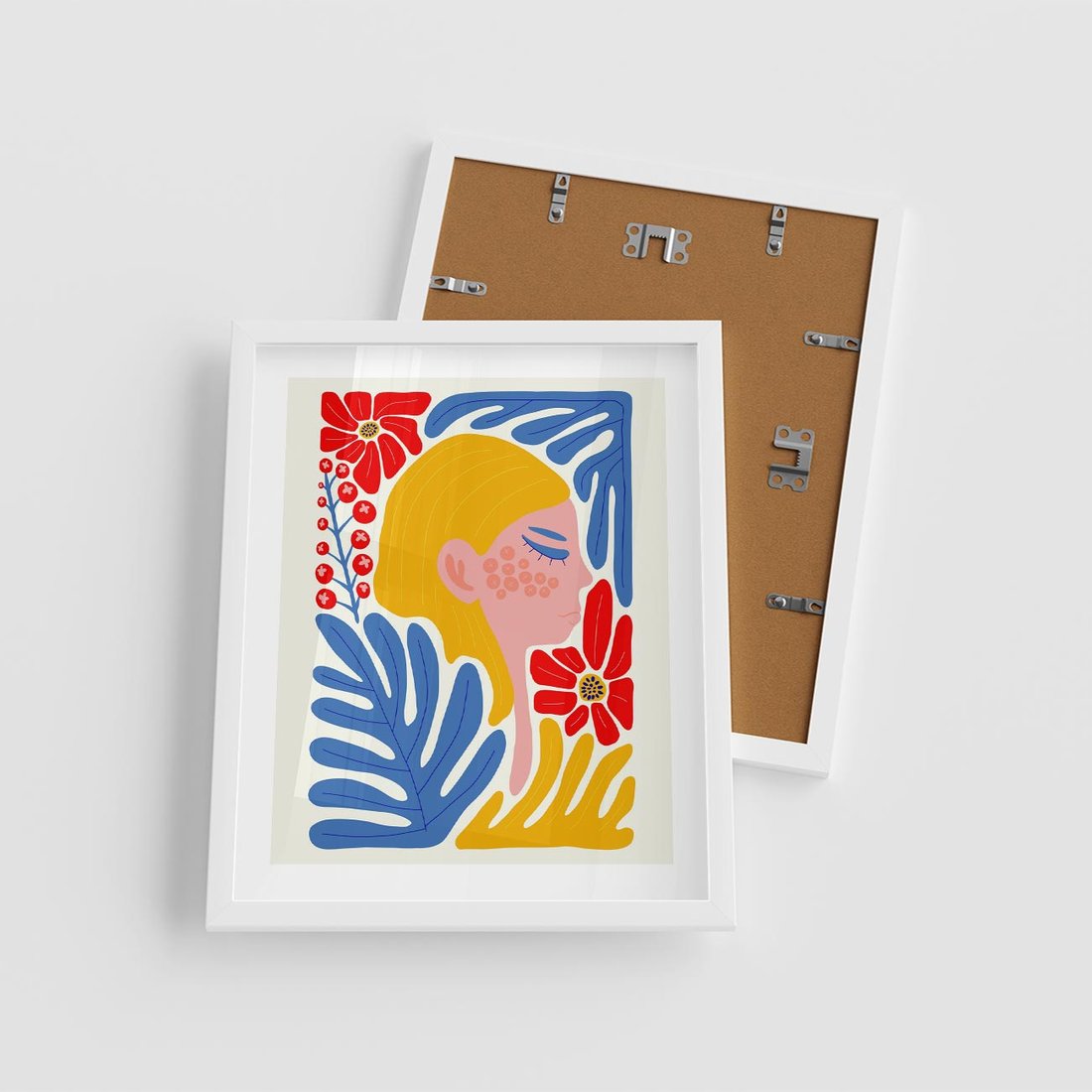 Ten nowoczesny plakat eksploruje kobiecą naturę w abstrakcyjny sposób, wykorzystując wyraziste kolory. Sztuka ta jest manifestacją siły, piękna i ekspresji, tworząc unikalne wrażenie w przestrzeni.