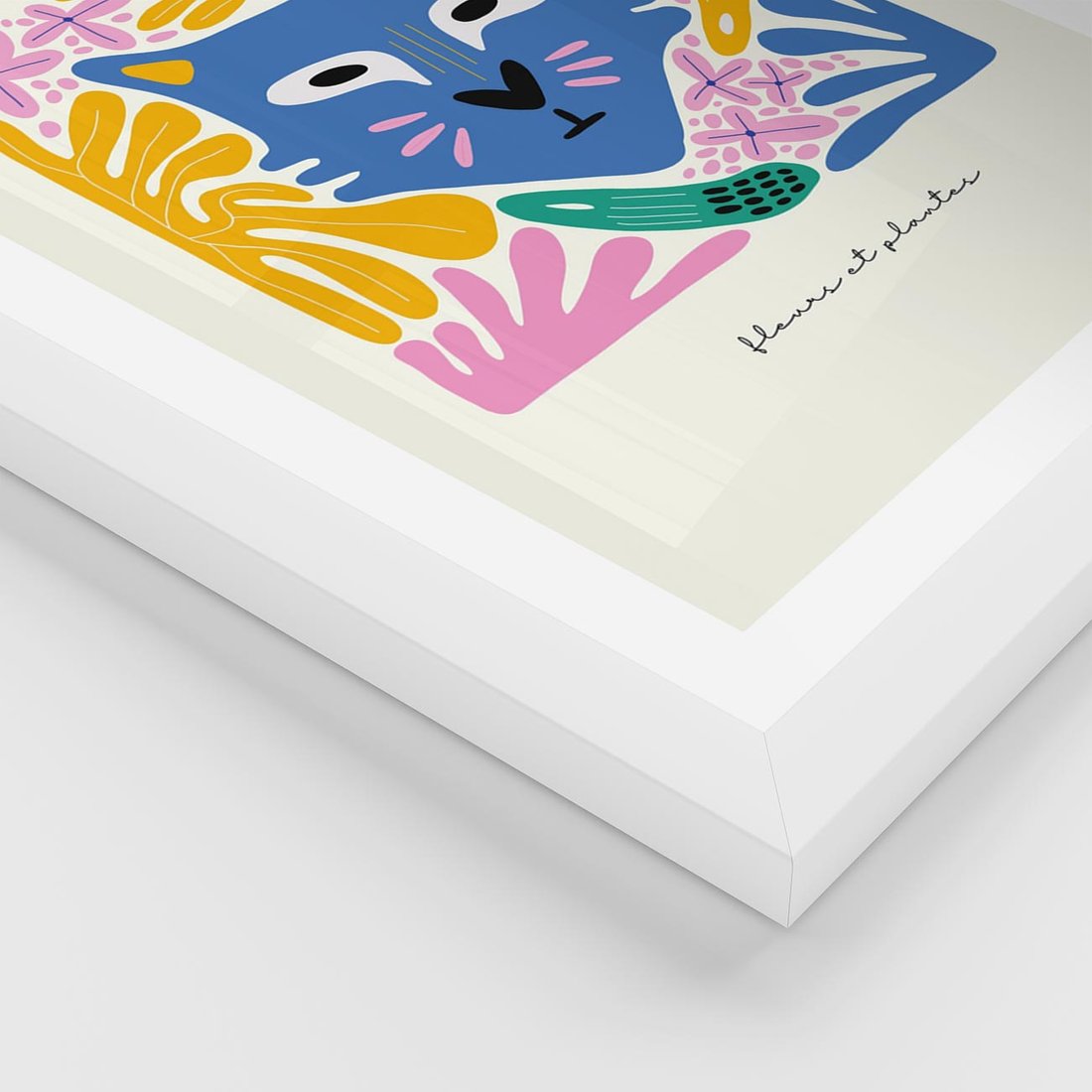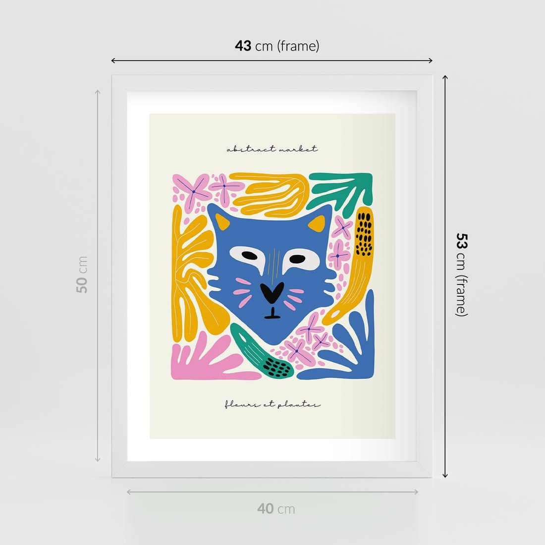 Plakat w ramie 40x50 - Kolorowe Spektrum - abstrakcyjny plakat, niebieski kot - rama biała