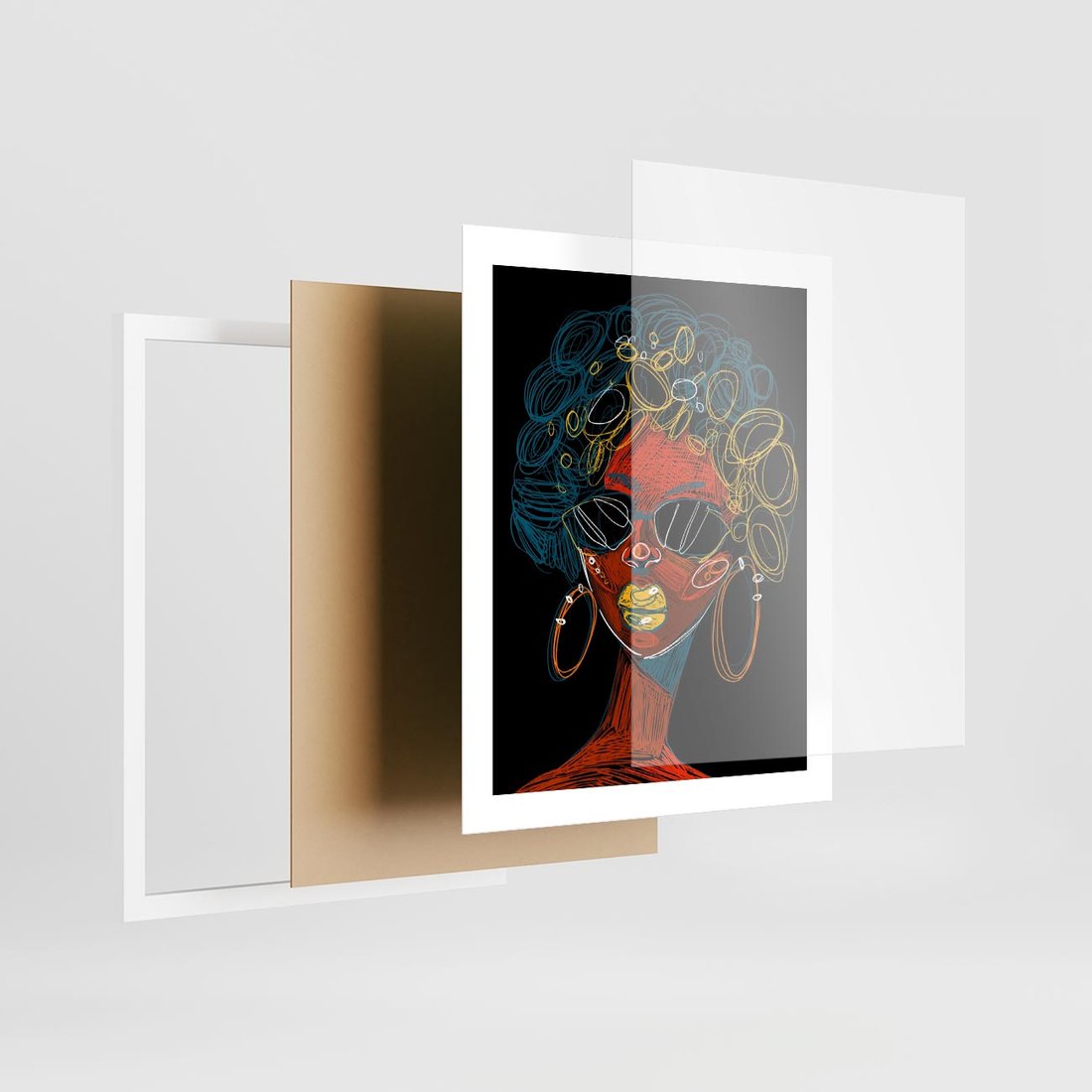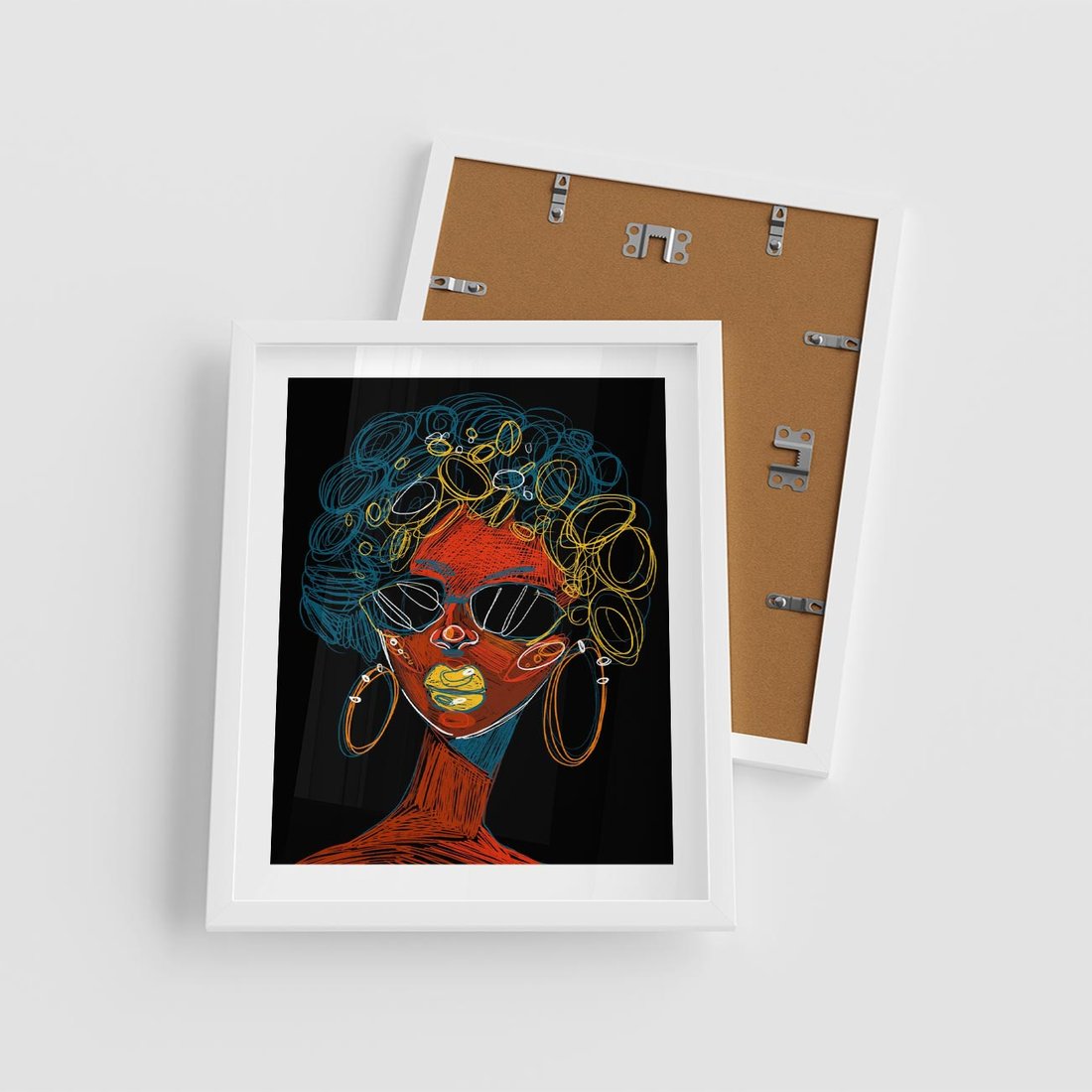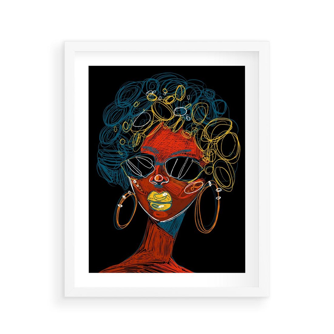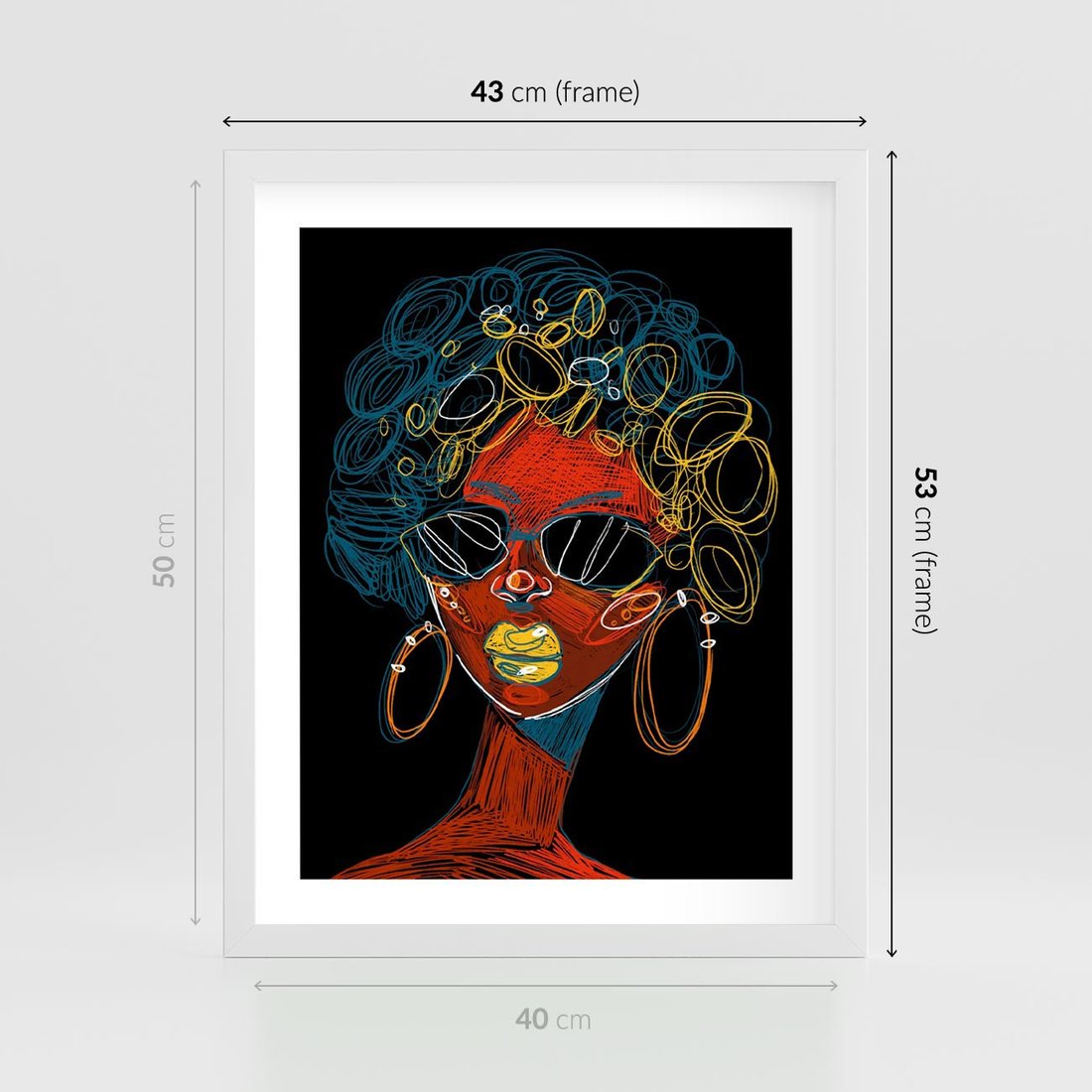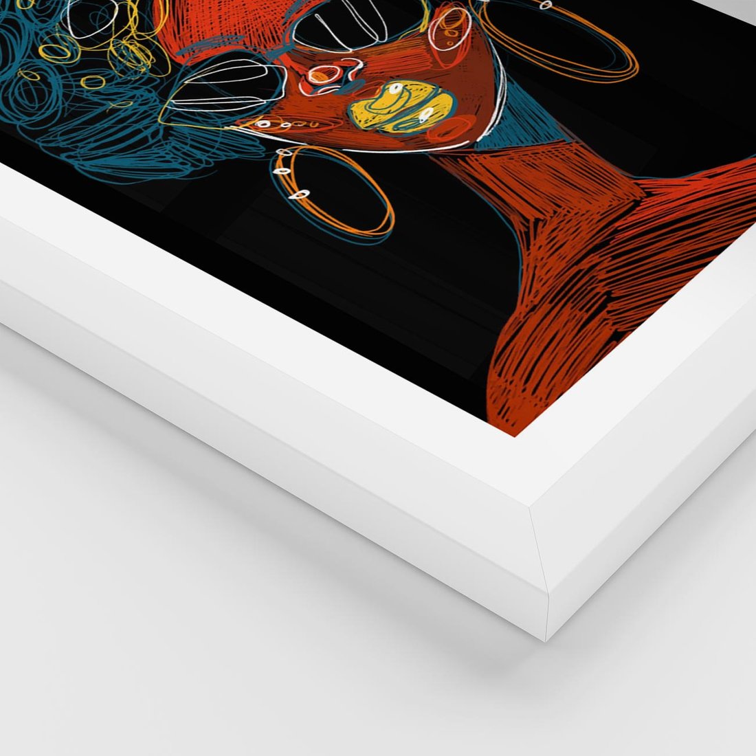 Plakat w ramie 40x50 - Kolorowe Wibracje Rzeczywistości - abstrakcyjny portret kobiety, twarz - rama biała