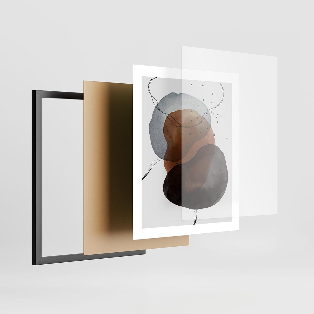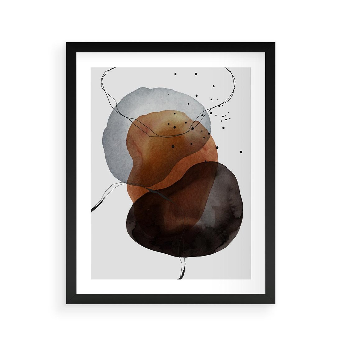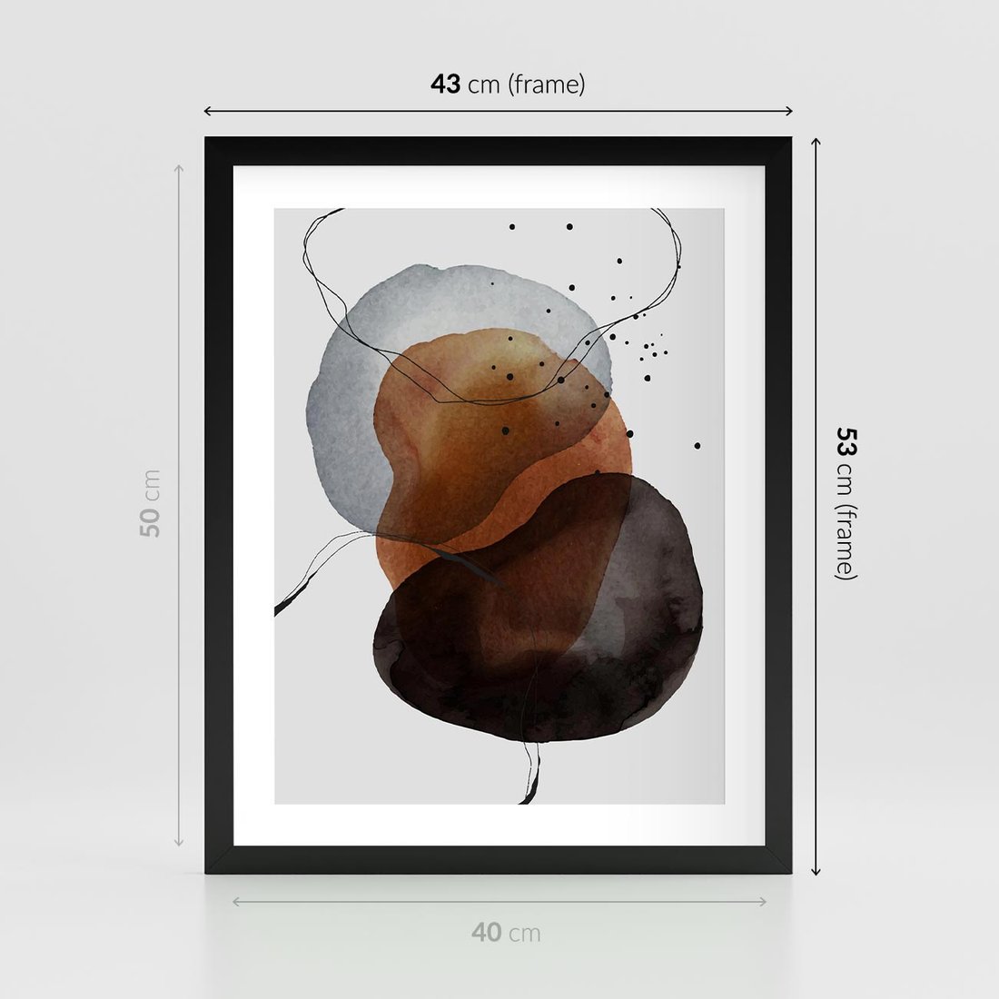 Plakat w ramie 40x50 - Kolorowe Wizje - abstrakcyjne plamy akwarelowe, czarny szkic - rama czarna
