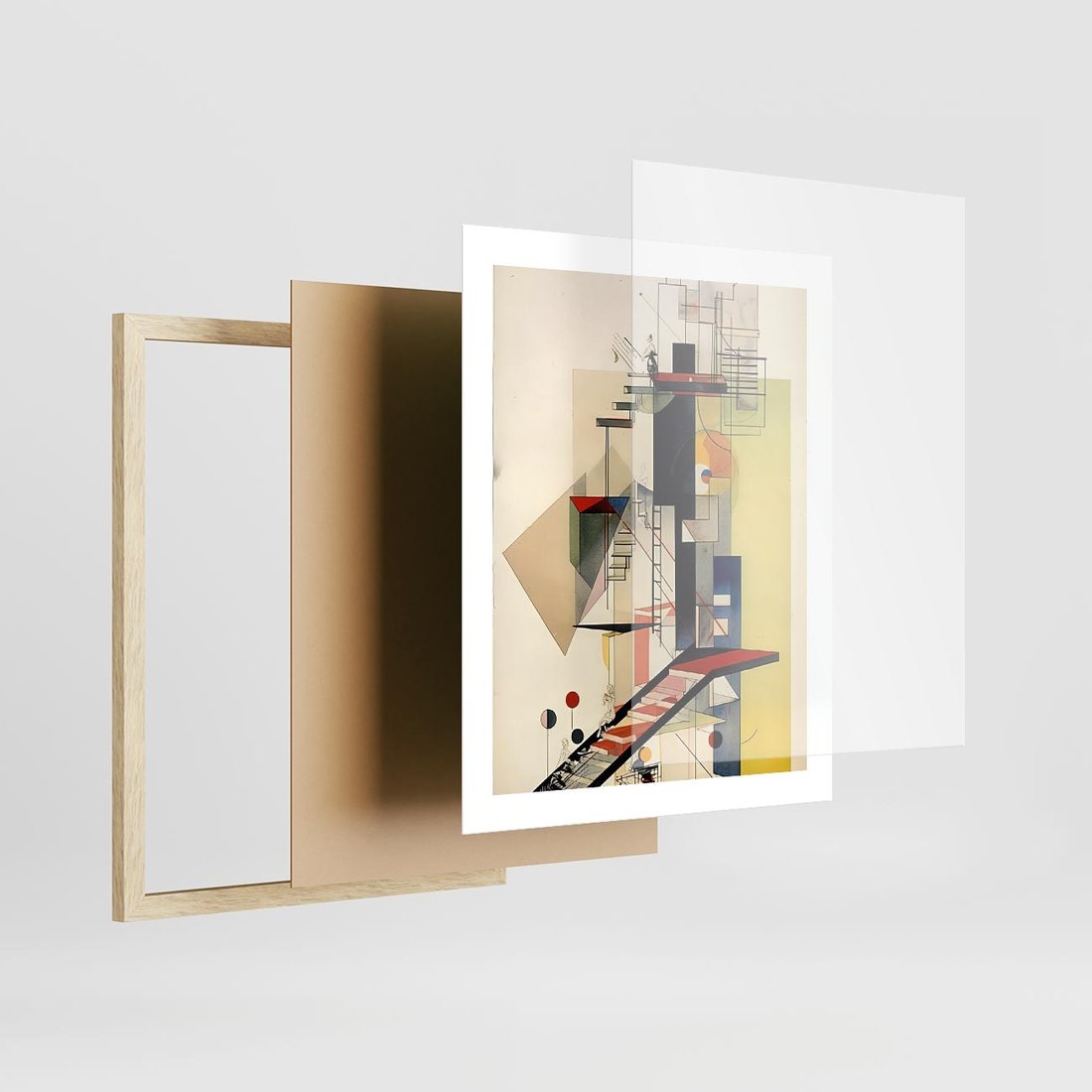 Ten abstrakcyjny obraz nawiązuje do stylu Wassily'ego Kandinsky'ego, z jego charakterystycznymi dziwnymi i niekonwencjonalnymi formami. Kolorowa kompozycja ożywia przestrzeń i przyciąga uwagę, pozostawiając widza z fascynującym wrażeniem nieokreślonej abstrakcji.