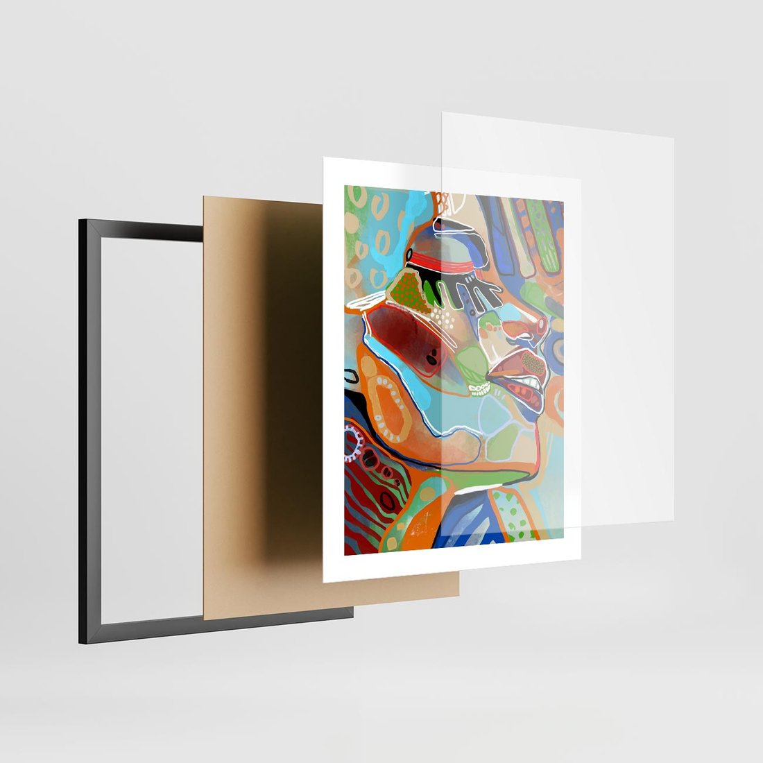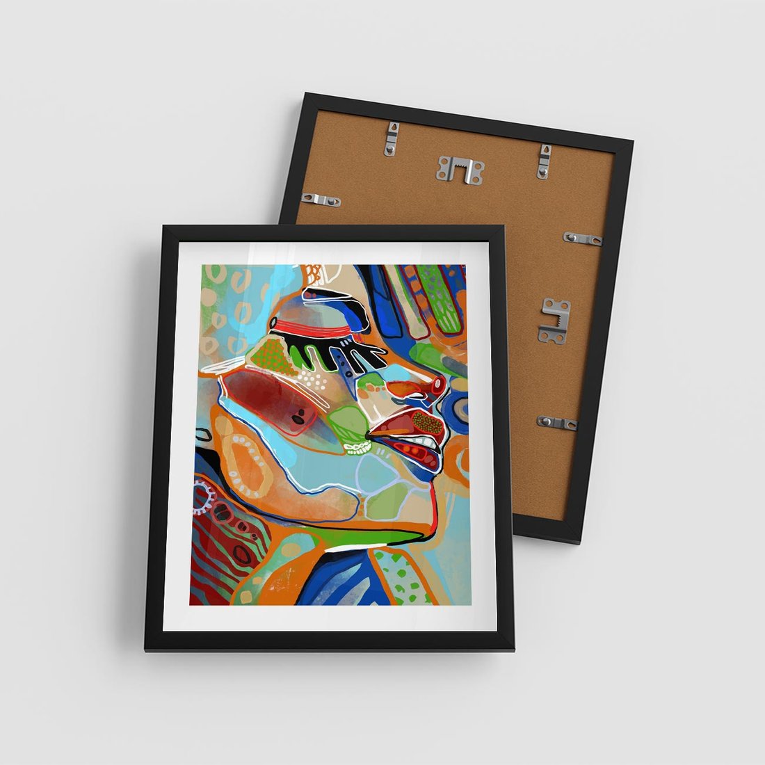 Plakat w ramie 40x50 - Kolorowe Wnętrza Kształtów - abstrakcyjny portret kobiety, twarz - rama czarna