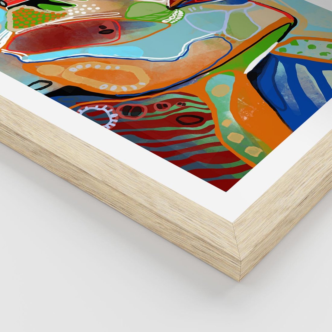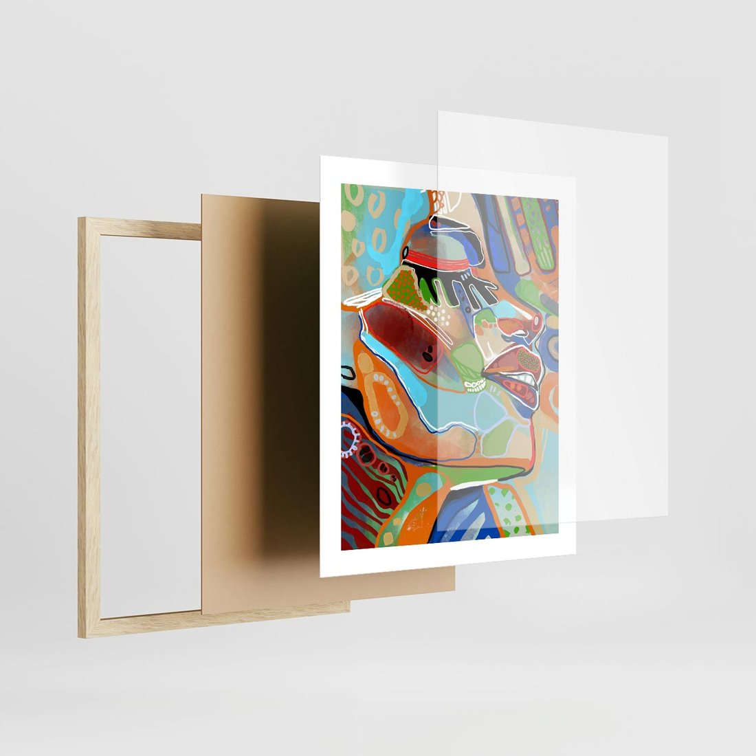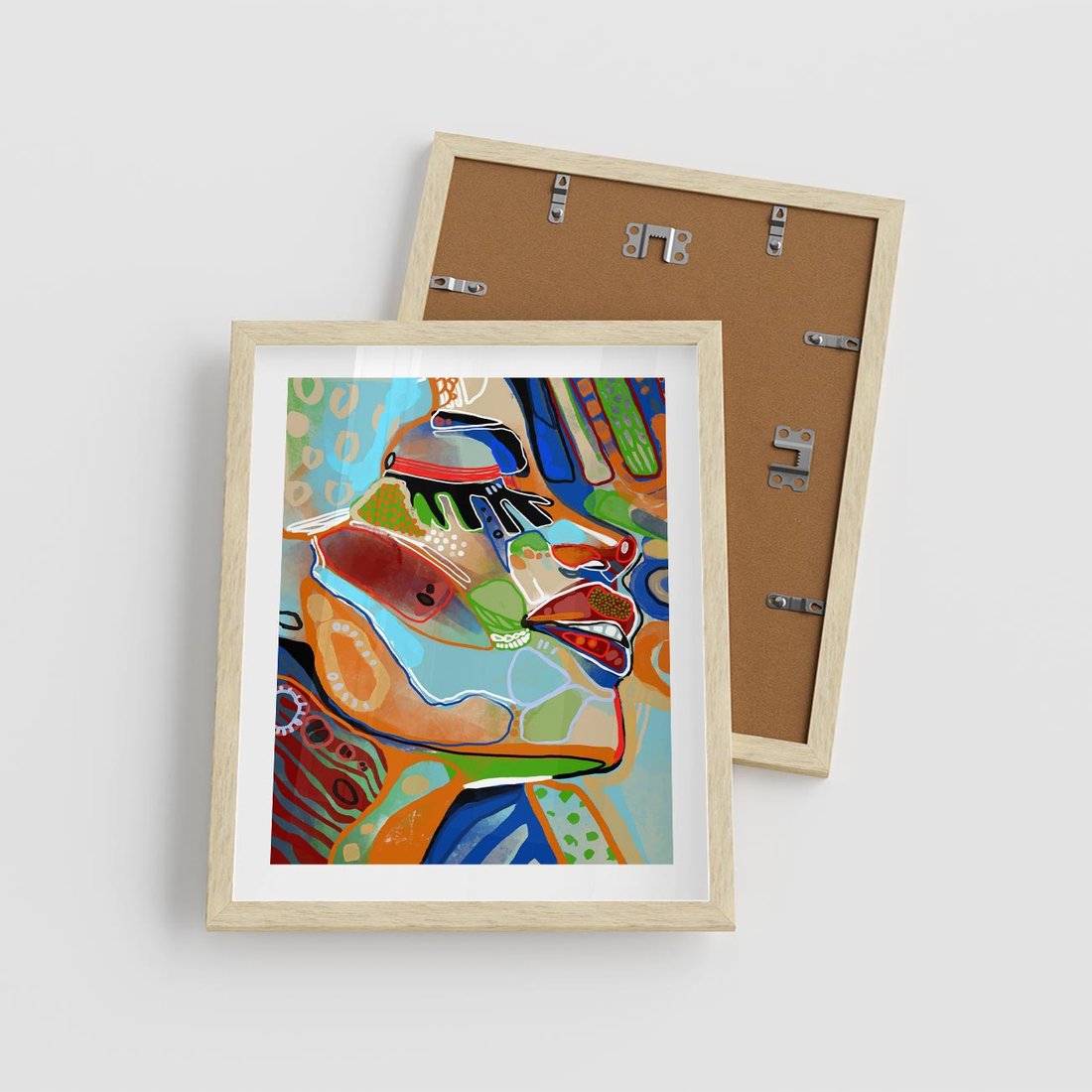Plakat w ramie 40x50 - Kolorowe Wnętrza Kształtów - abstrakcyjny portret kobiety, twarz - rama drewno