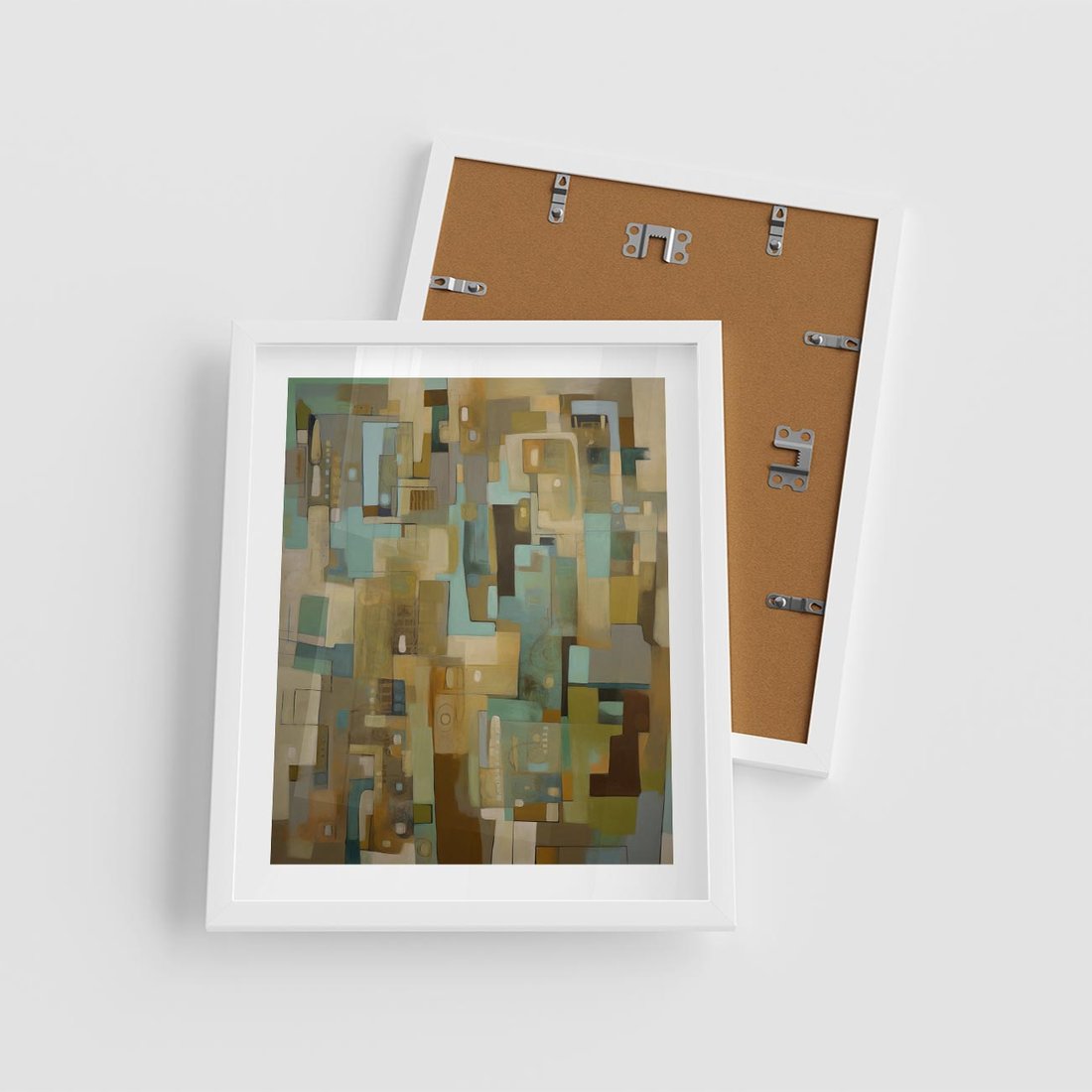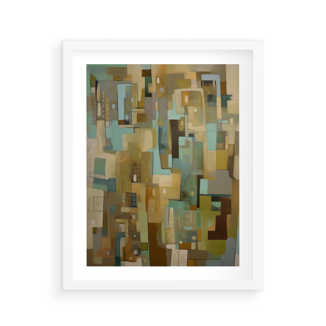 Ten abstrakcyjny obraz jest pełen mnogości kolorów i drobnych elementów, które zaskakująco tworzą spójną całość. Geometryczne kształty w ciekawej kompozycji zapewniają intrygujący efekt, przyciągając wzrok i budząc ciekawość. To dzieło sztuki jest dynamiczne i pełne energii.
