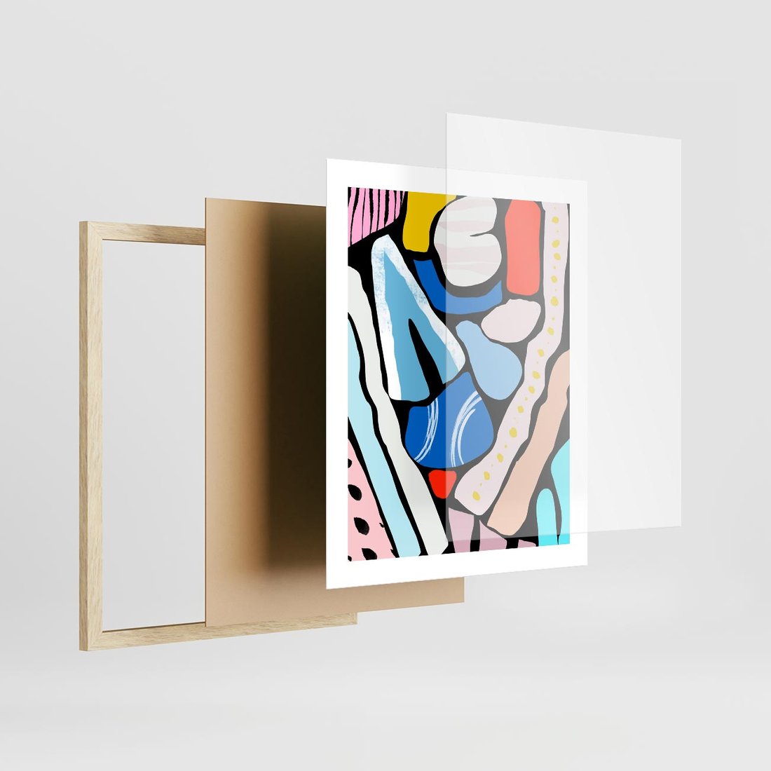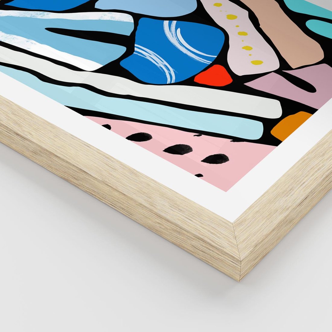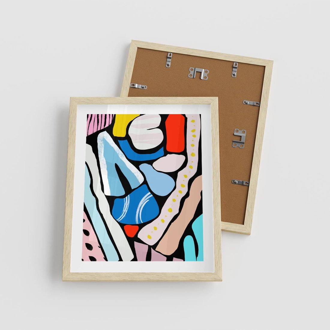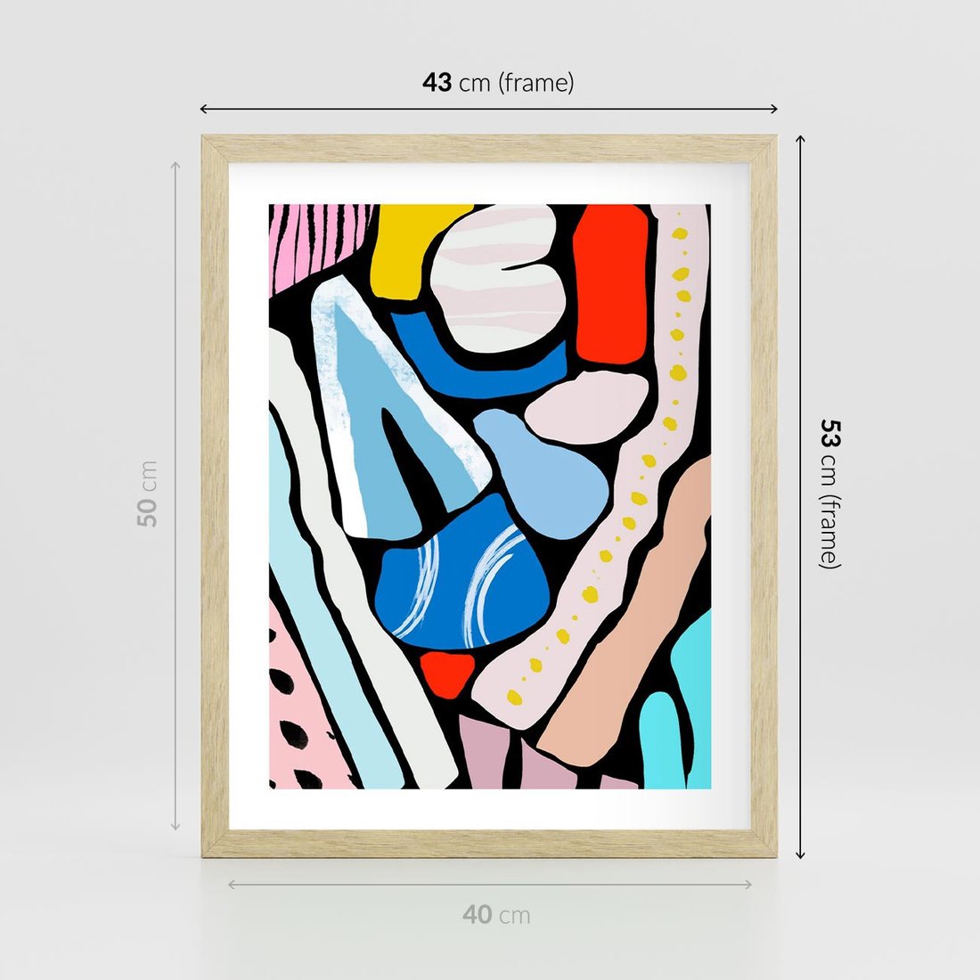 Plakat w ramie 40x50 - Kolory Na Czerni - abstrakcyjne formy, komiksowy styl - rama drewno