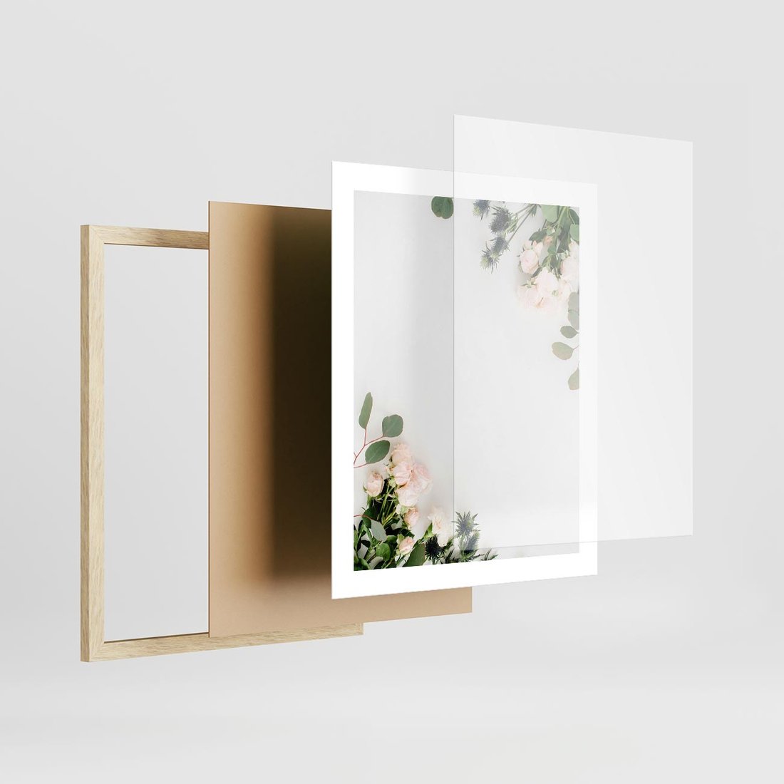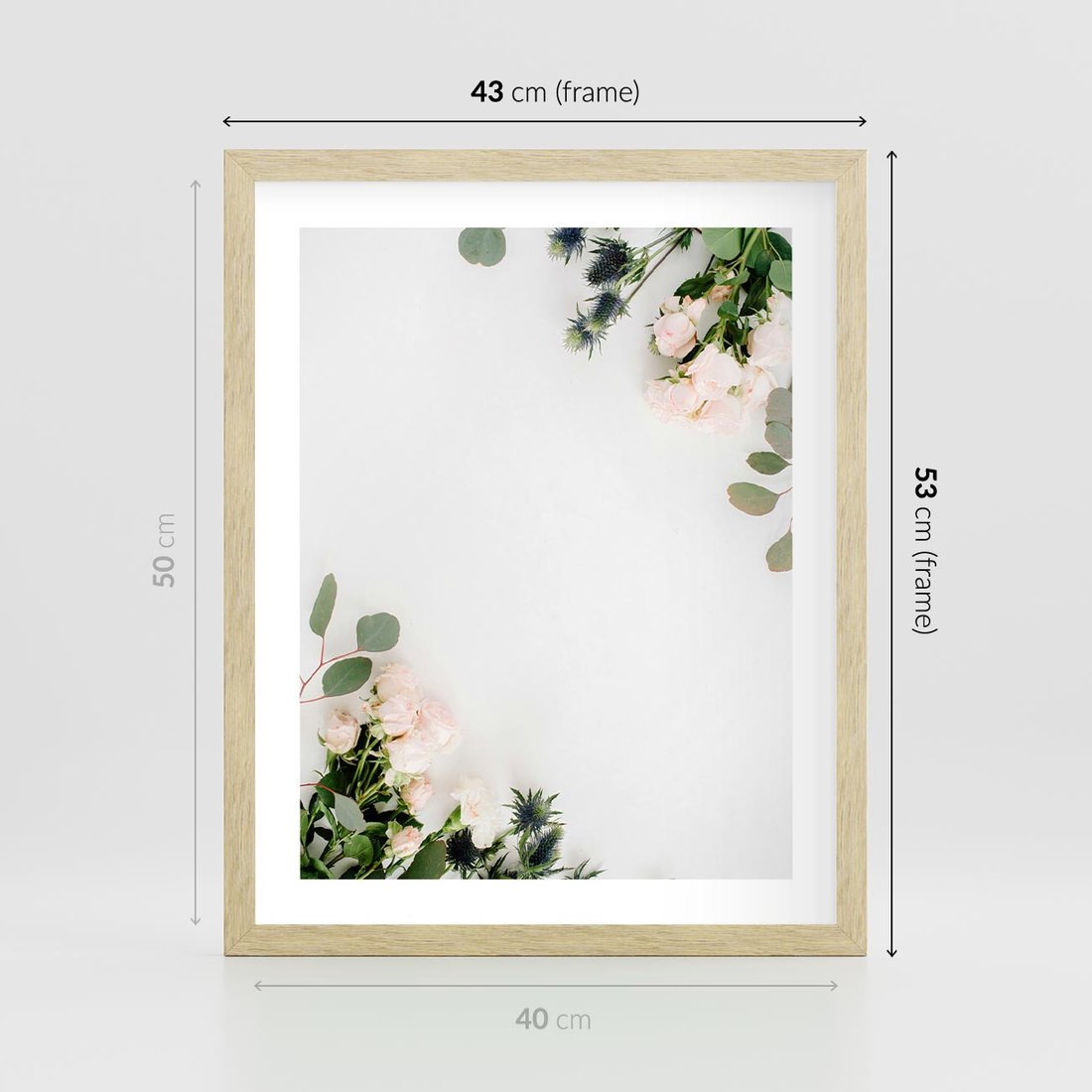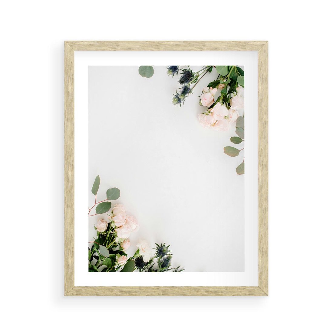 - Plakat w ramie 40x50 - Kompozycja z Białych Róż i Eukaliptusa