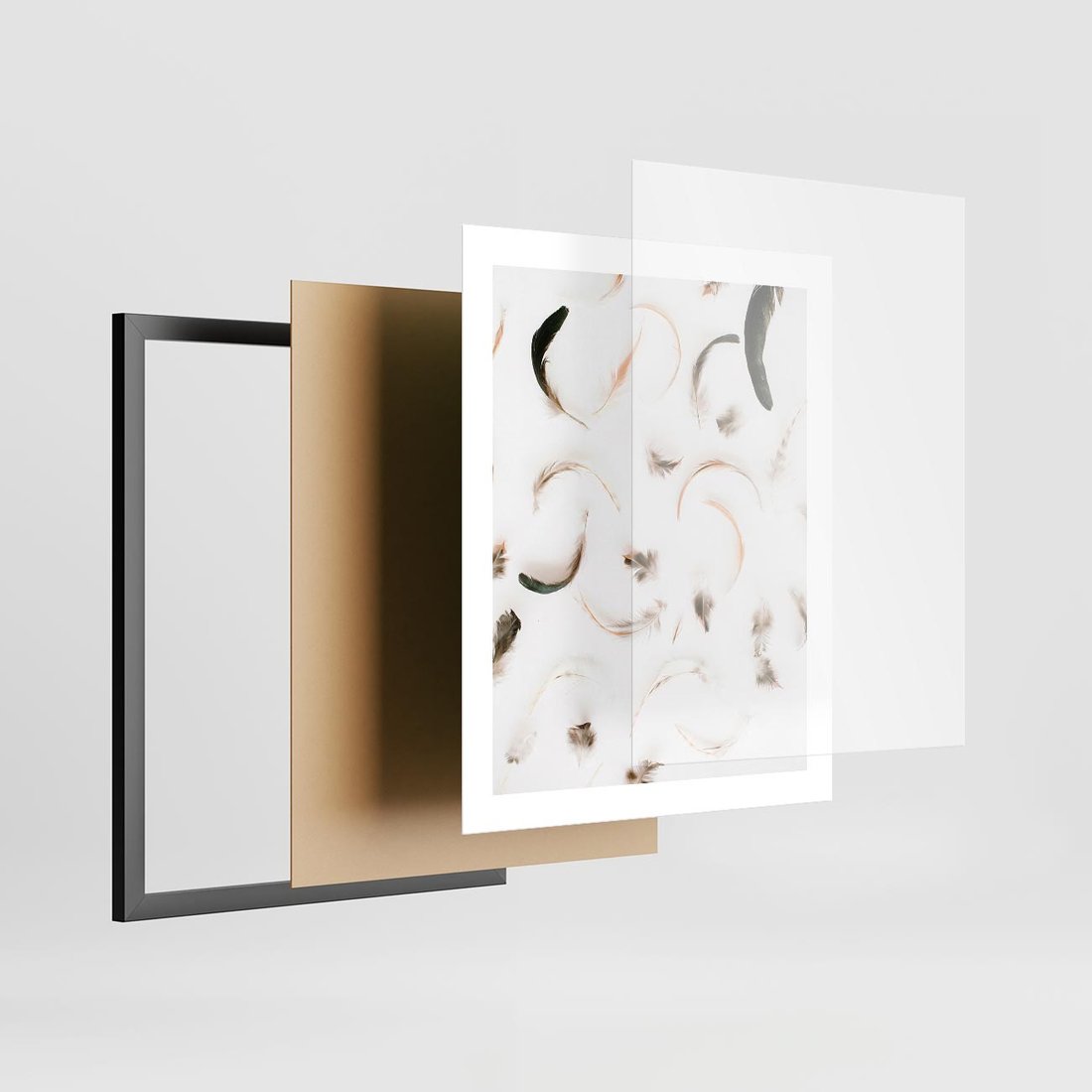 Plakat w ramie 40x50 - Kompozycja z Piór - pióra, kompozycja - rama czarna