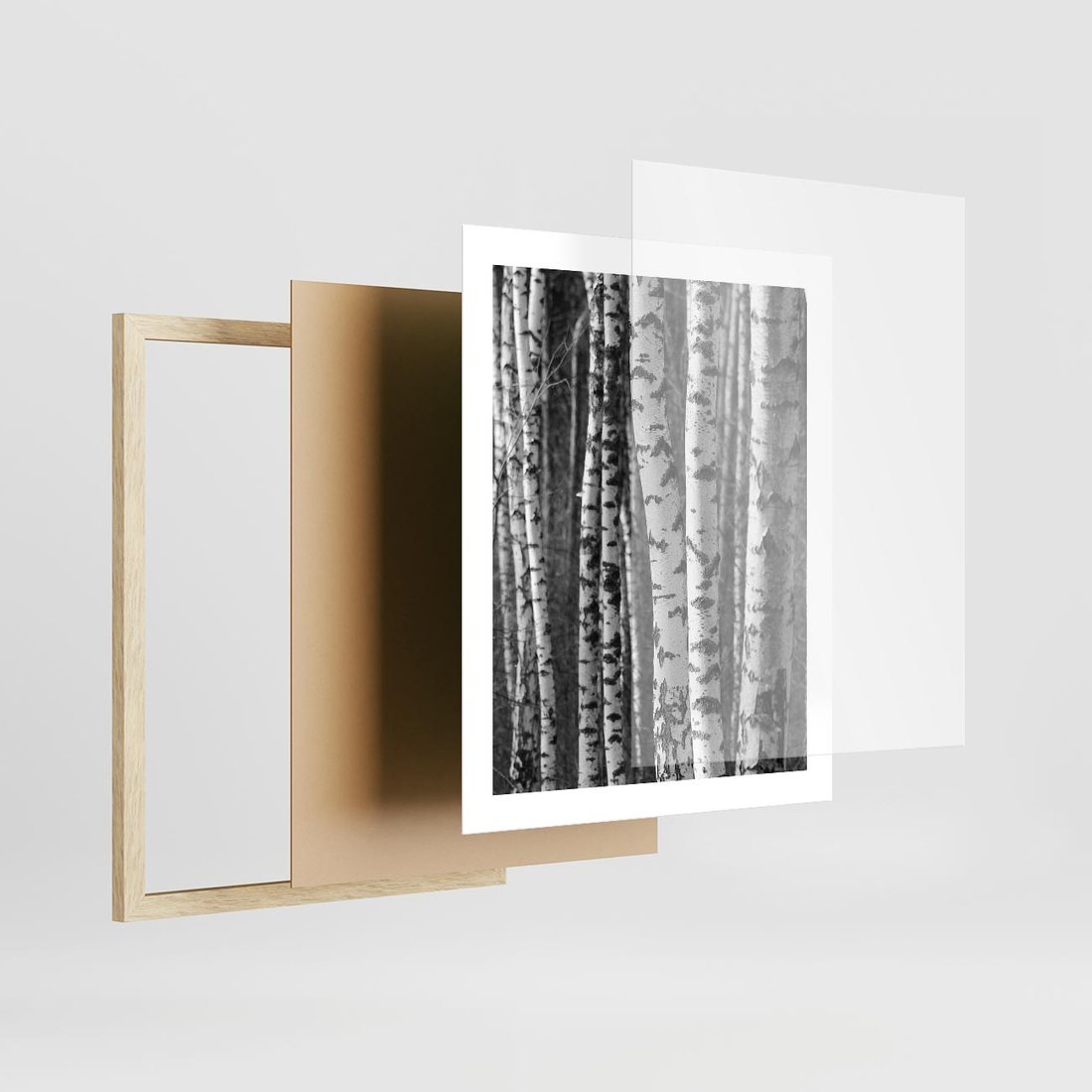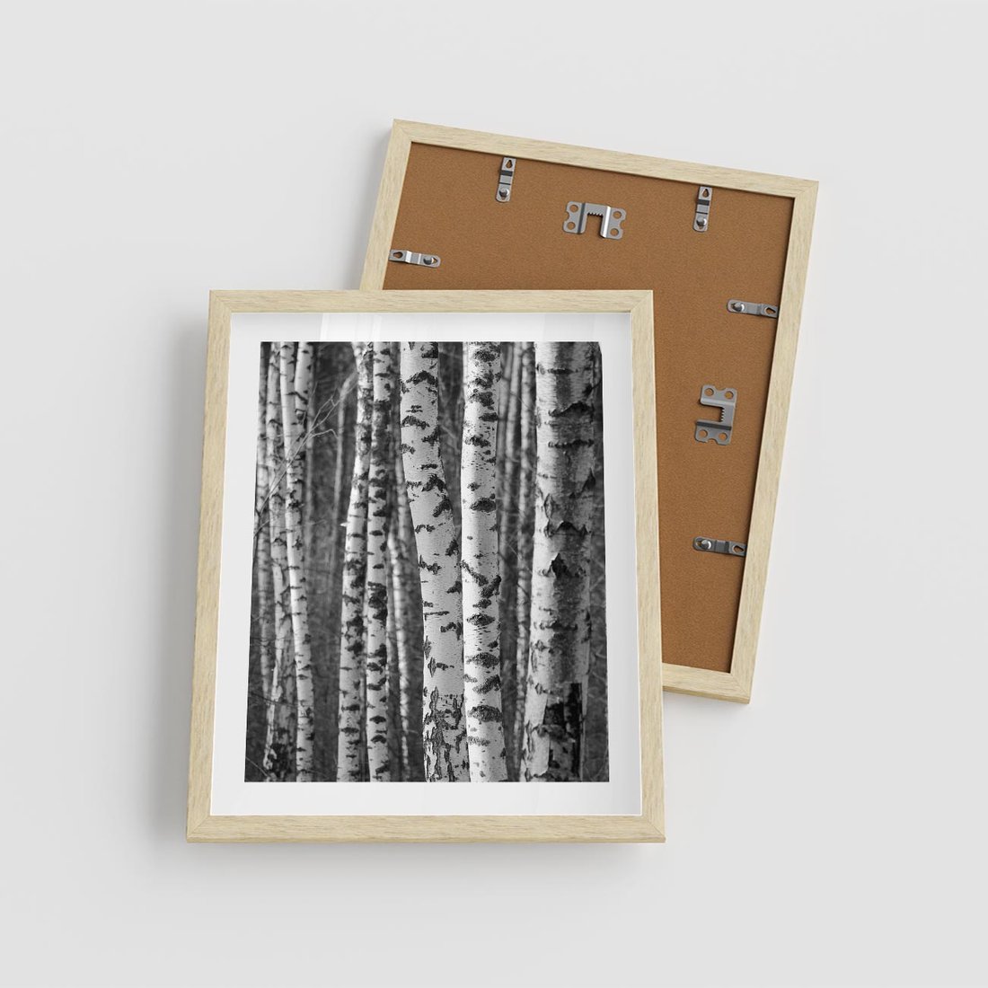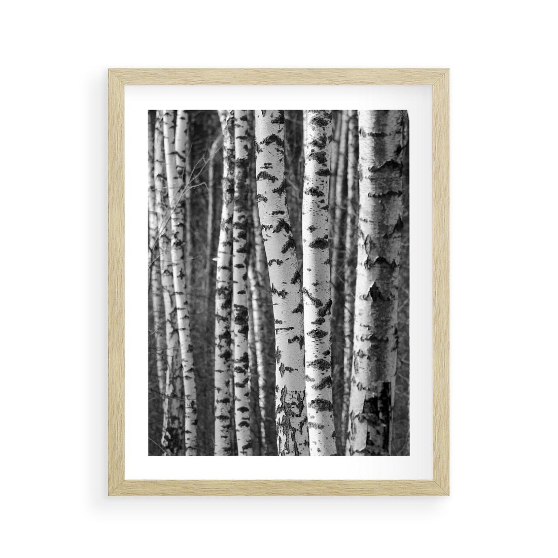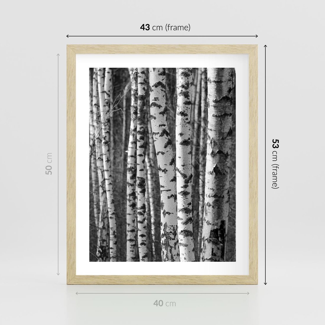 Plakat w ramie 40x50 - Kontrast Monochromatyczny - brzozy, czarno - rama drewno