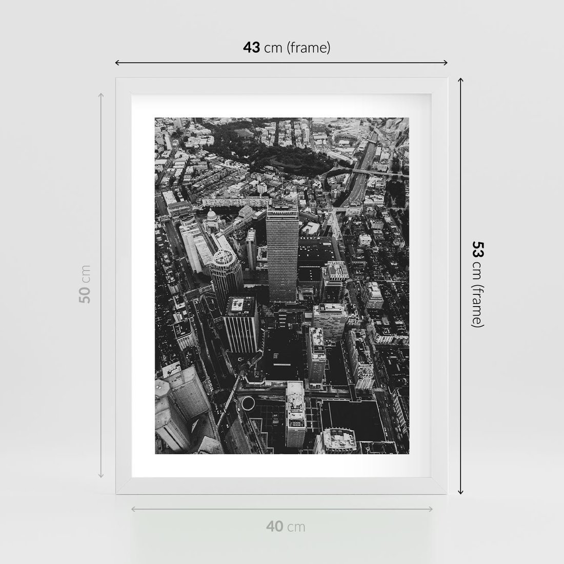Plakat w ramie 40x50 - Kontrastujące miasto - miasto, biało - rama biała