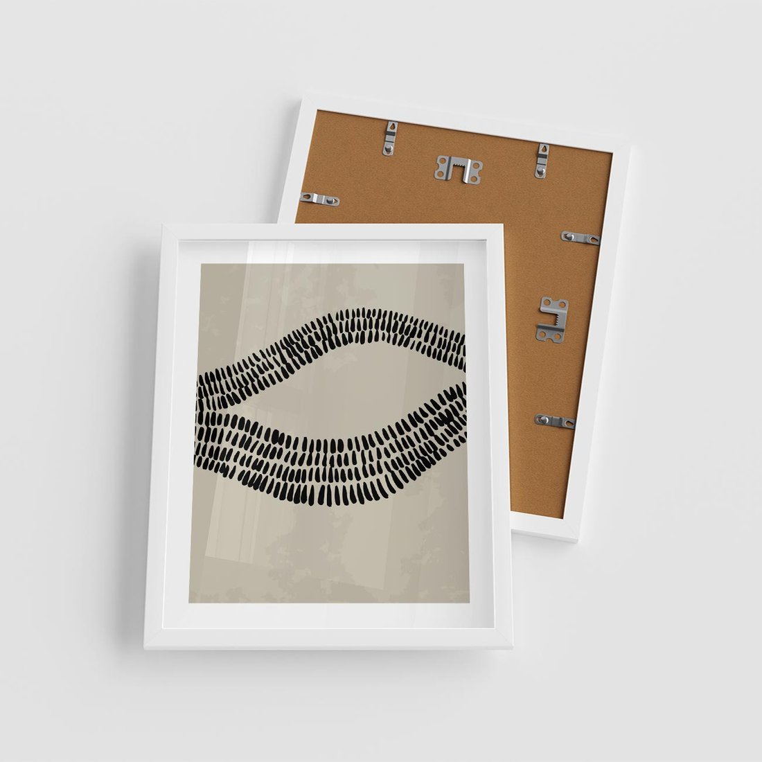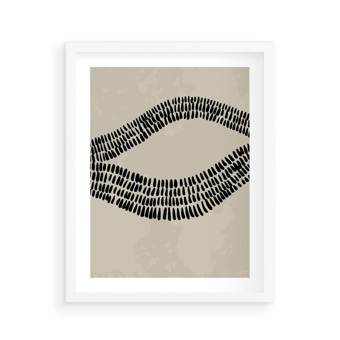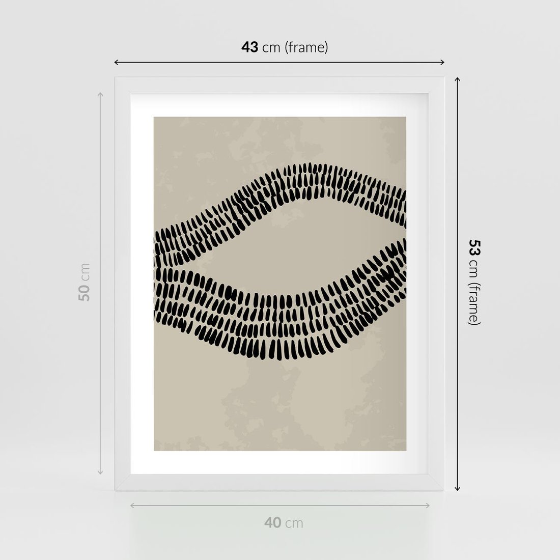 Plakat w ramie 40x50 - Kontury Ewolucji Materii - boho plakat, czarne kropki kreski - rama biała