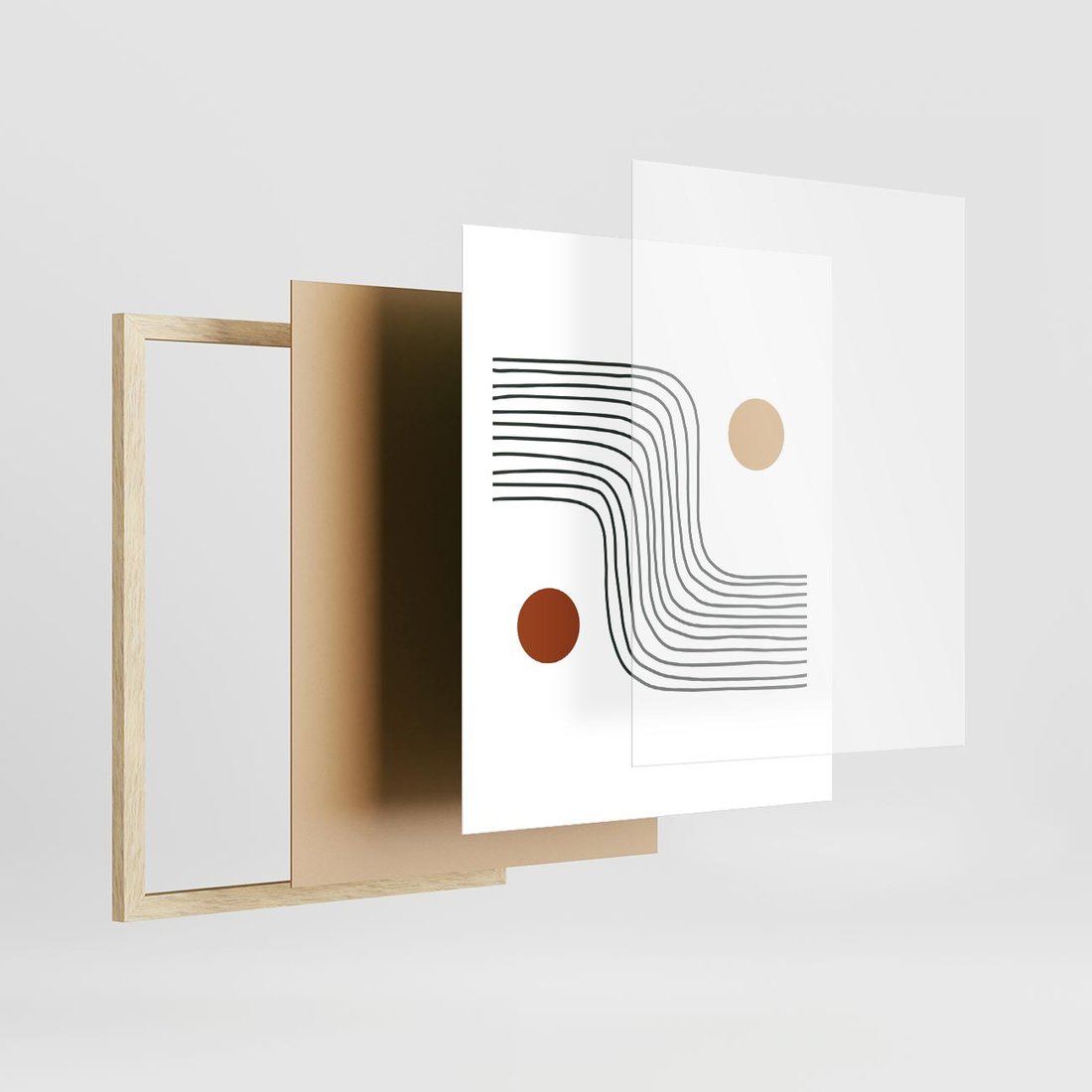 Ta minimalistyczna sztuka mid century wyróżnia się nieregularnymi liniami i geometrycznymi kołami, tworząc unikalną kompozycję. Wprowadź subtelny urok do swojego wnętrza, wyrażając równowagę i prostotę z nutą artystycznego ducha.