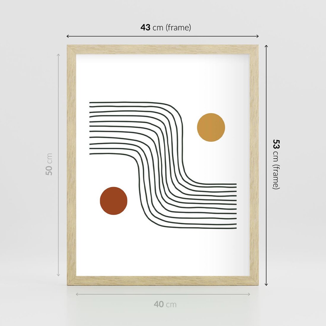Plakat w ramie 40x50 - Kontury Harmonii - nieregularne linie, koła - rama drewno