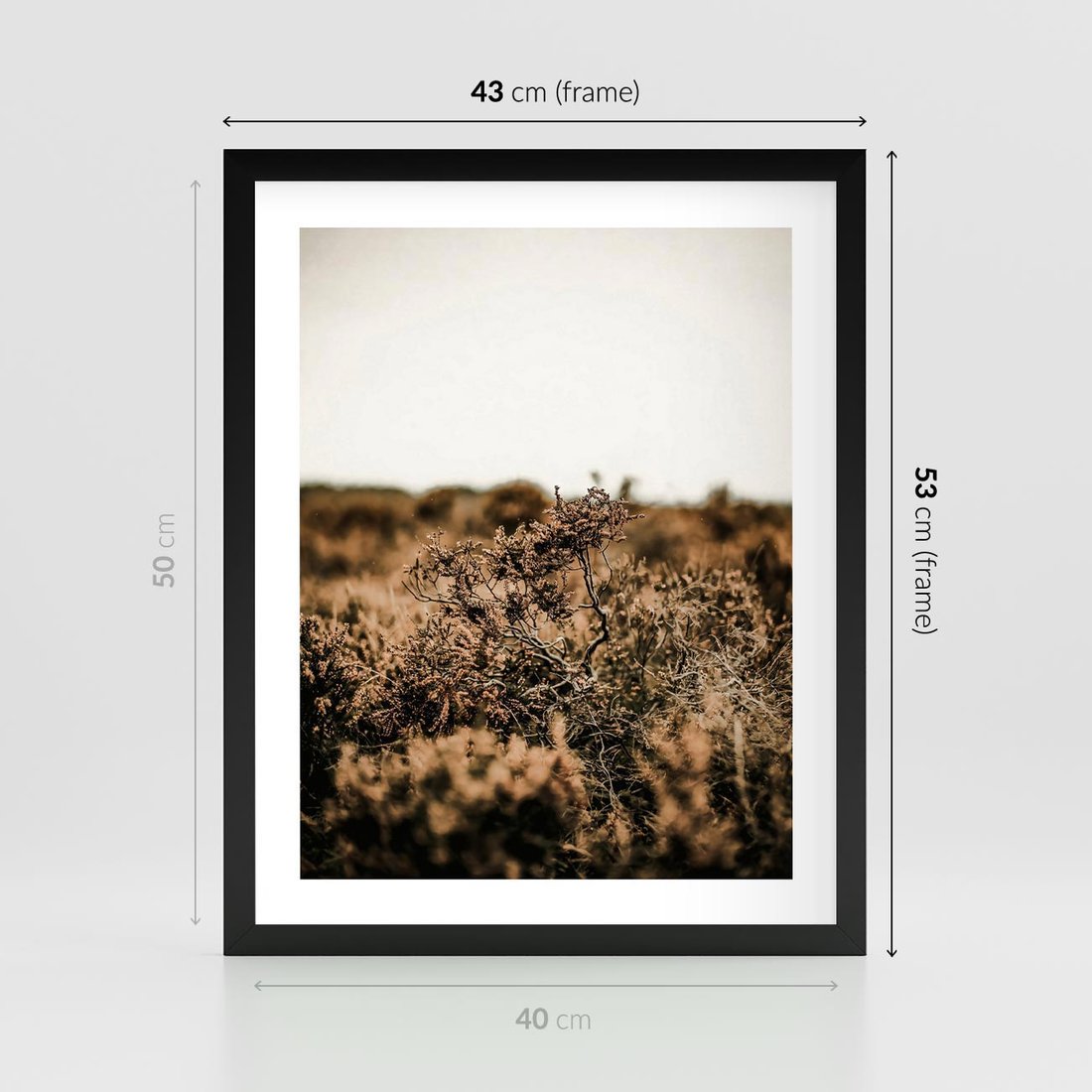 Plakat w ramie 40x50 - Krajobraz W Naturze: Beże i Brązy - suche krzewy, natura - rama czarna