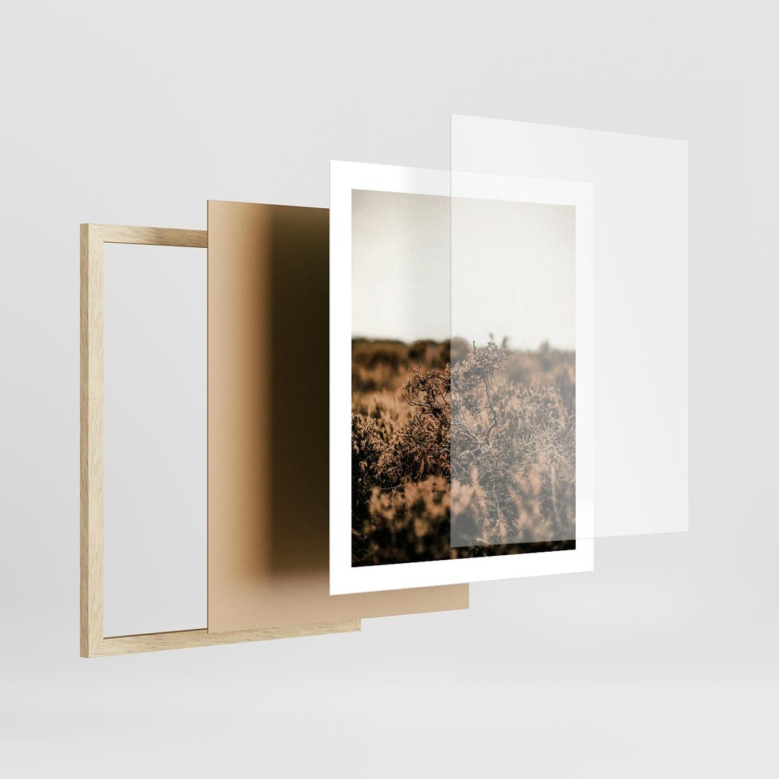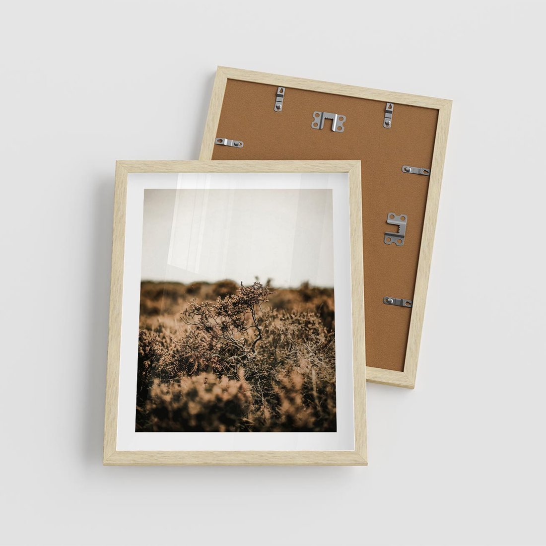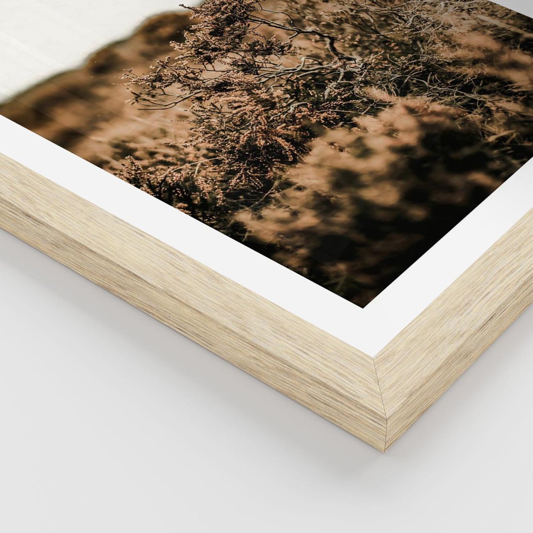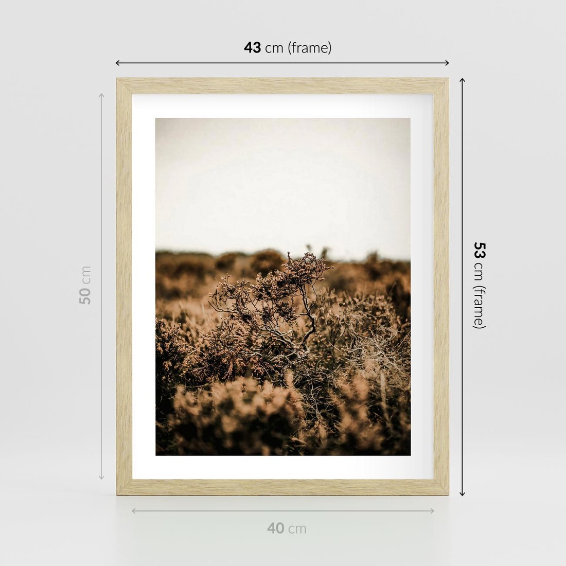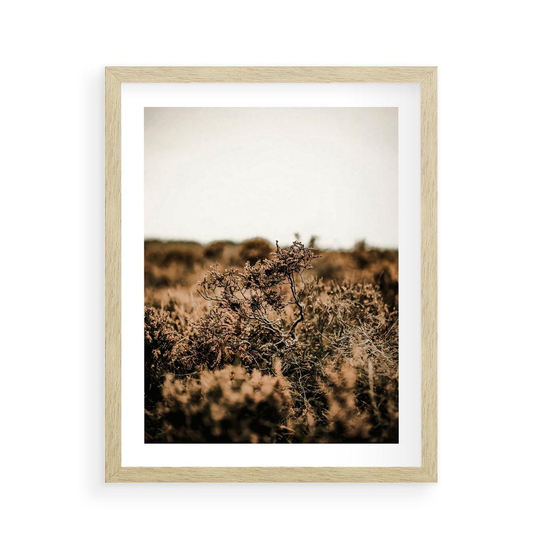 Plakat w ramie 40x50 - Krajobraz W Naturze: Beże i Brązy - suche krzewy, natura - rama drewno