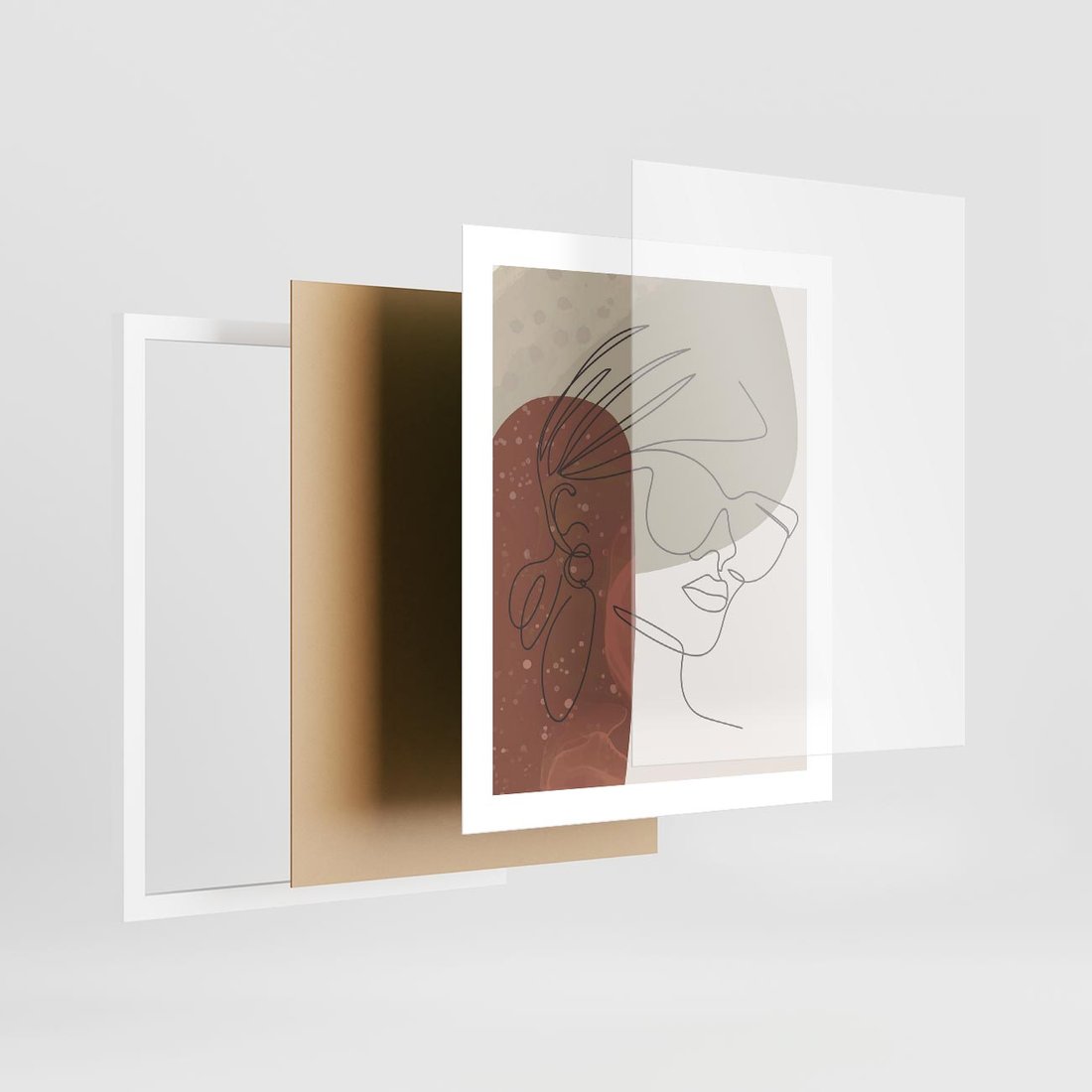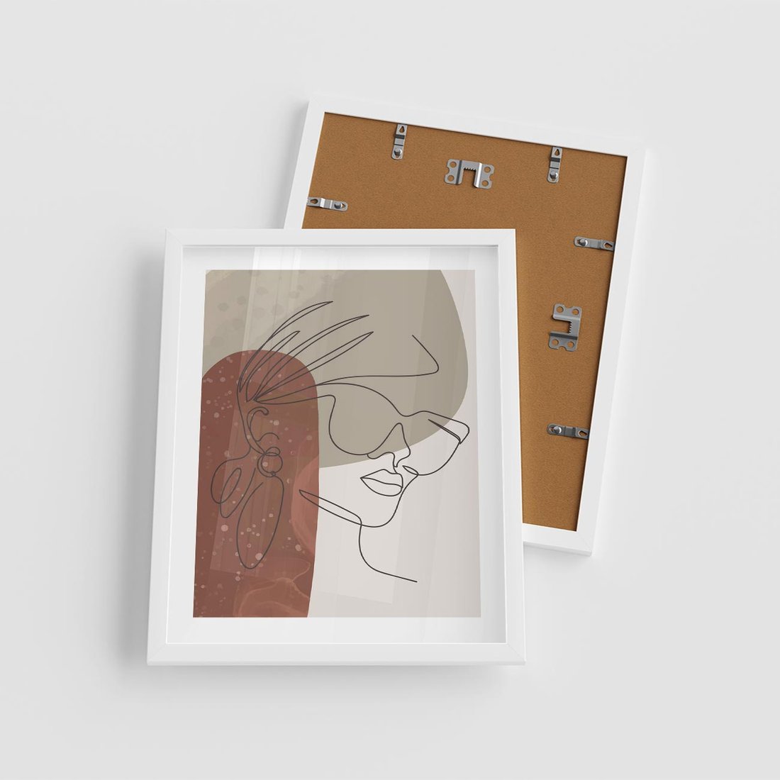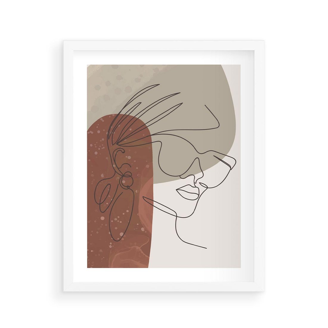 Obraz przedstawia abstrakcyjną grafikę, na której tło składa się z plam, a portret kobiety jest narysowany jedną linią. Ta kompozycja artystyczna wyraża kreatywność i oryginalność, idealnie pasując do wnętrz, które pragną wyrazić unikalny charakter.