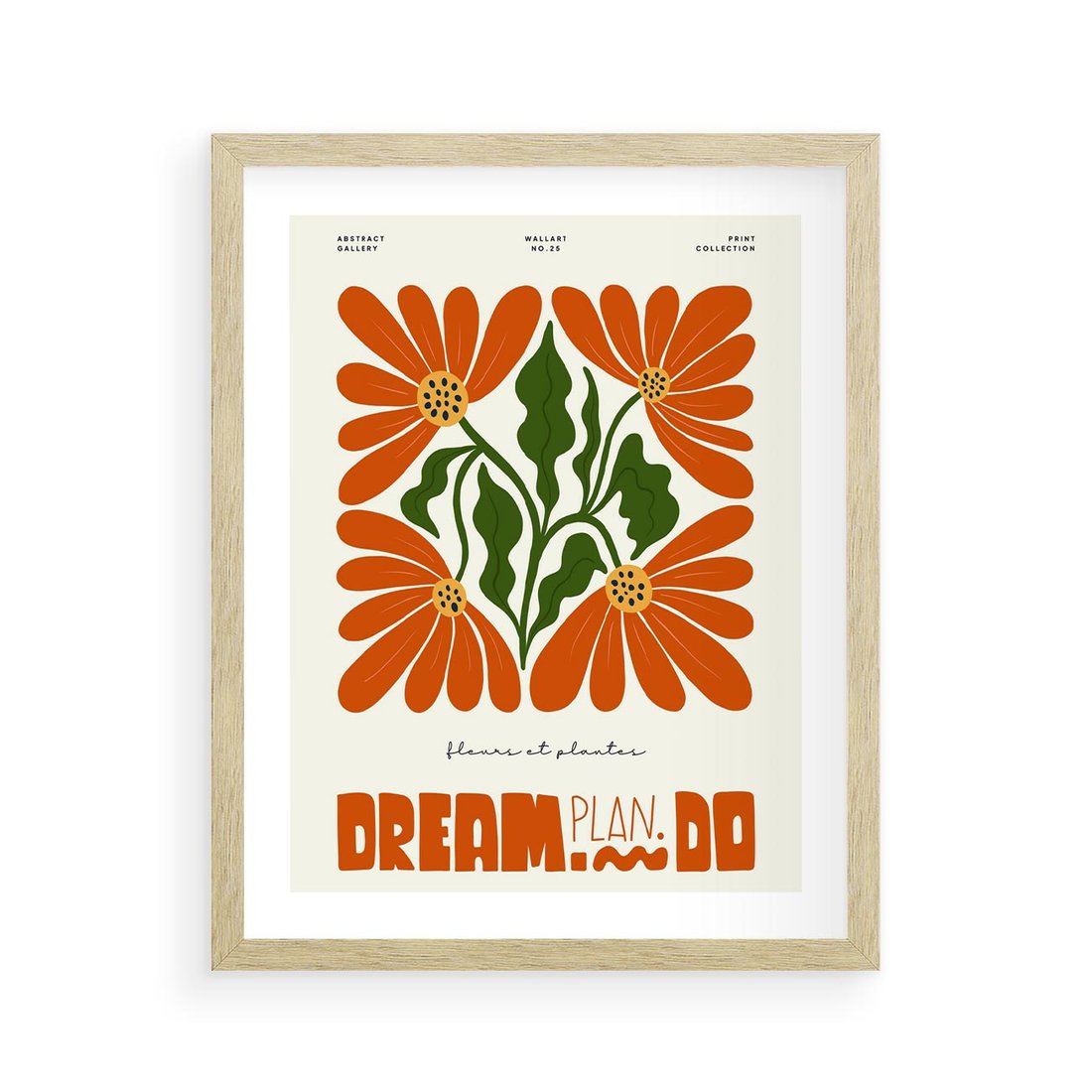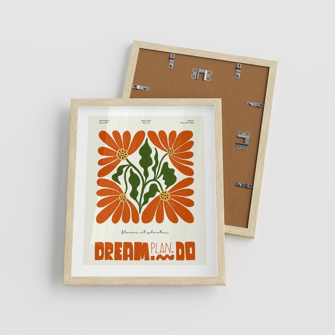Ta nowoczesna sztuka w abstrakcyjnym stylu ożywia przestrzeń kolorowymi kwiatowymi motywami. Wyjątkowa typografia dodaje głębi i wyraża siłę wyrazu w tej pełnej energii kompozycji.