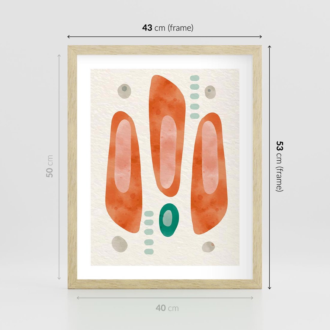 Plakat w ramie 40x50 - Księga Barw - abstrakcyjne formy, dominujący kolor pomarańczowy - rama drewno