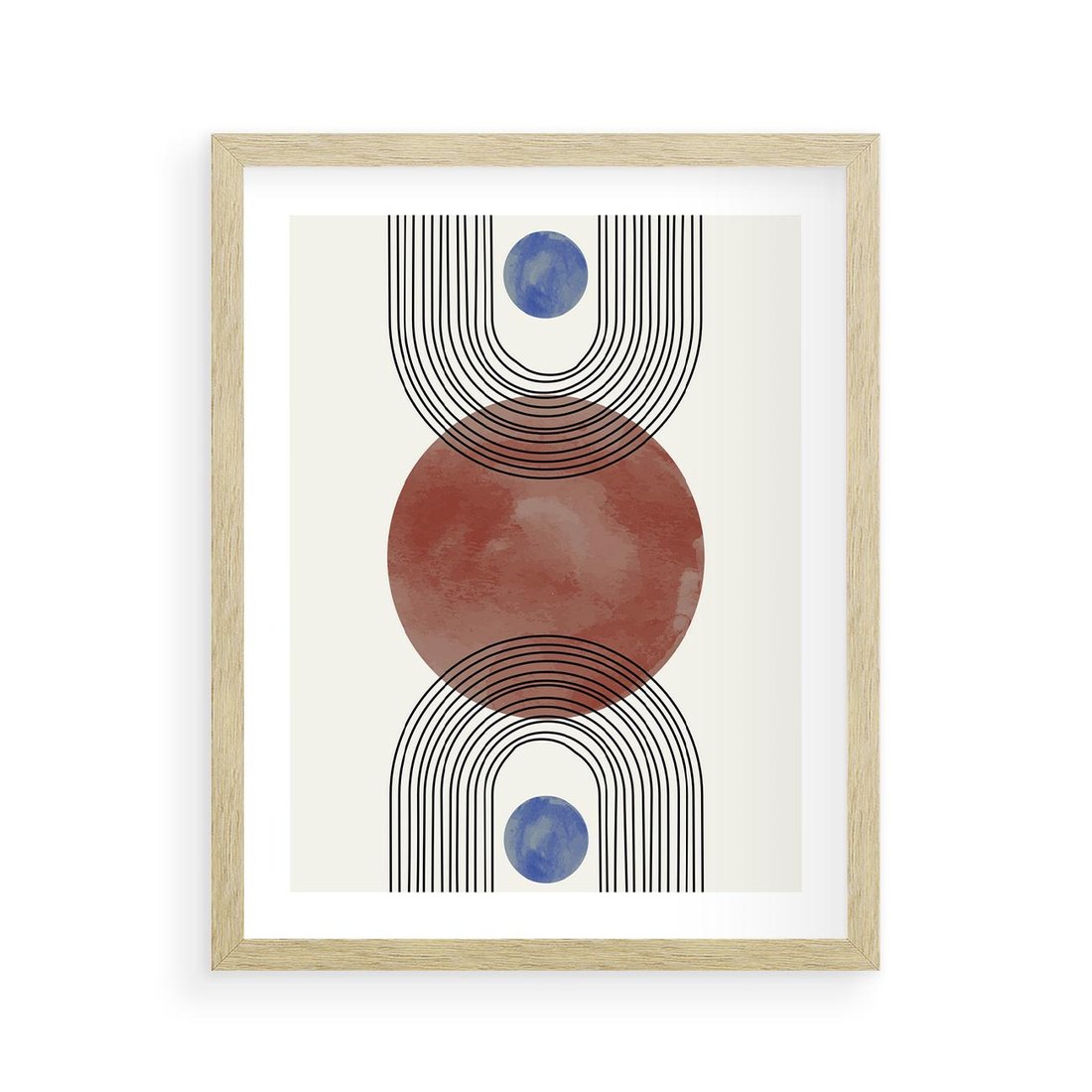 Ten elegancki plakat w stylu midcentury charakteryzuje się geometrycznymi formami, precyzyjnymi liniami i minimalistycznym szkicem. Idealnie wpisuje się w nowoczesne wnętrza, dodając im wyrafinowanego uroku.