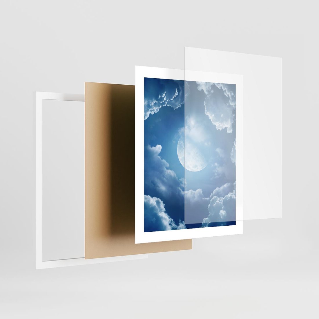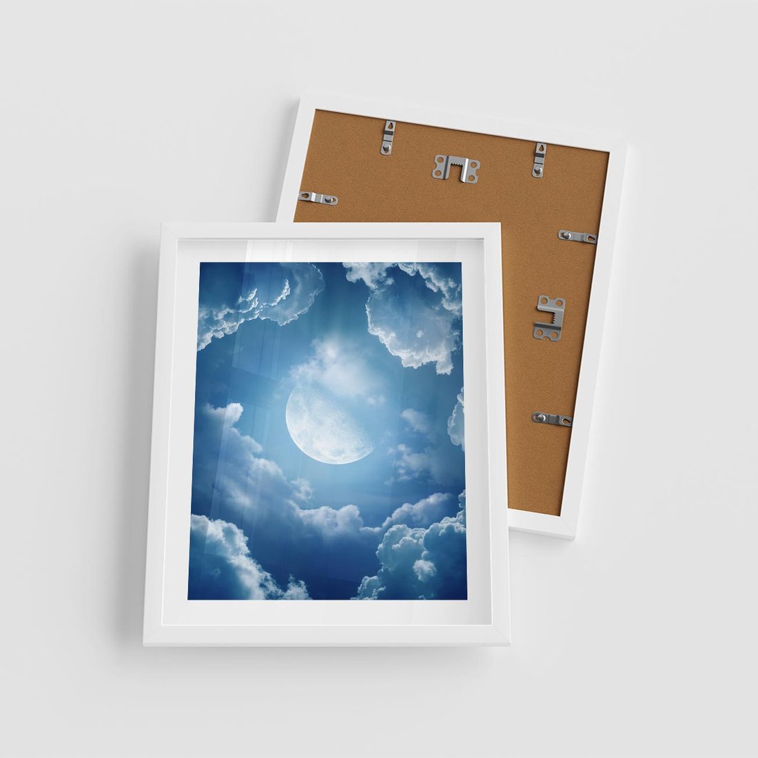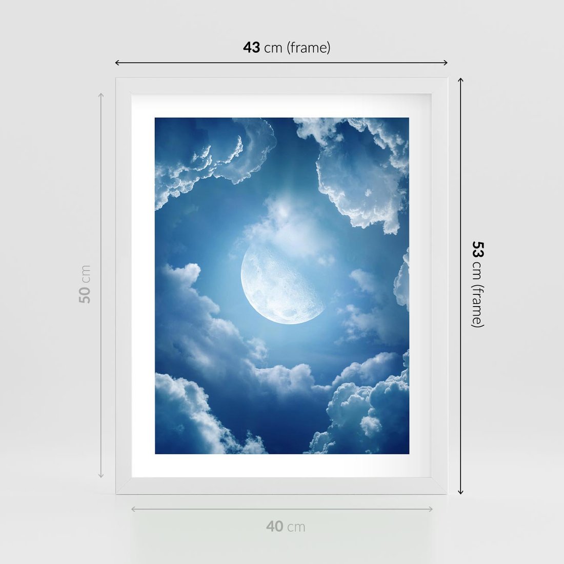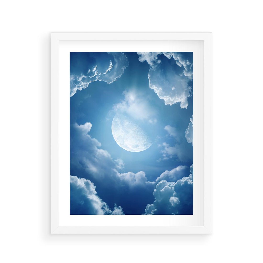 Plakat w ramie 40x50 - Księżycowe Chmury - księżyc, chmury - rama biała