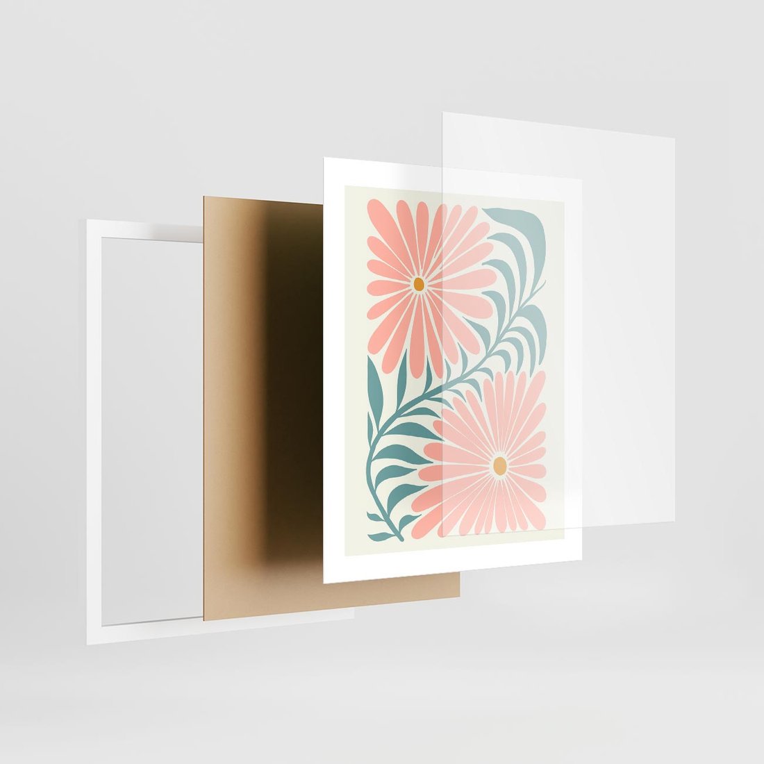 Ten plakat w minimalistycznym stylu uchwycił piękno kwiatów w delikatnych pastelach, tworząc wyjątkową sztukę nowoczesną. Kompozycja oddaje subtelną harmonię i wdzięk natury.