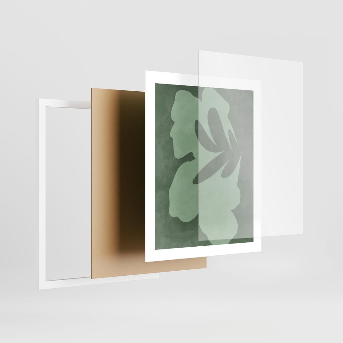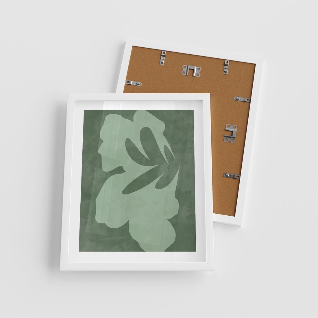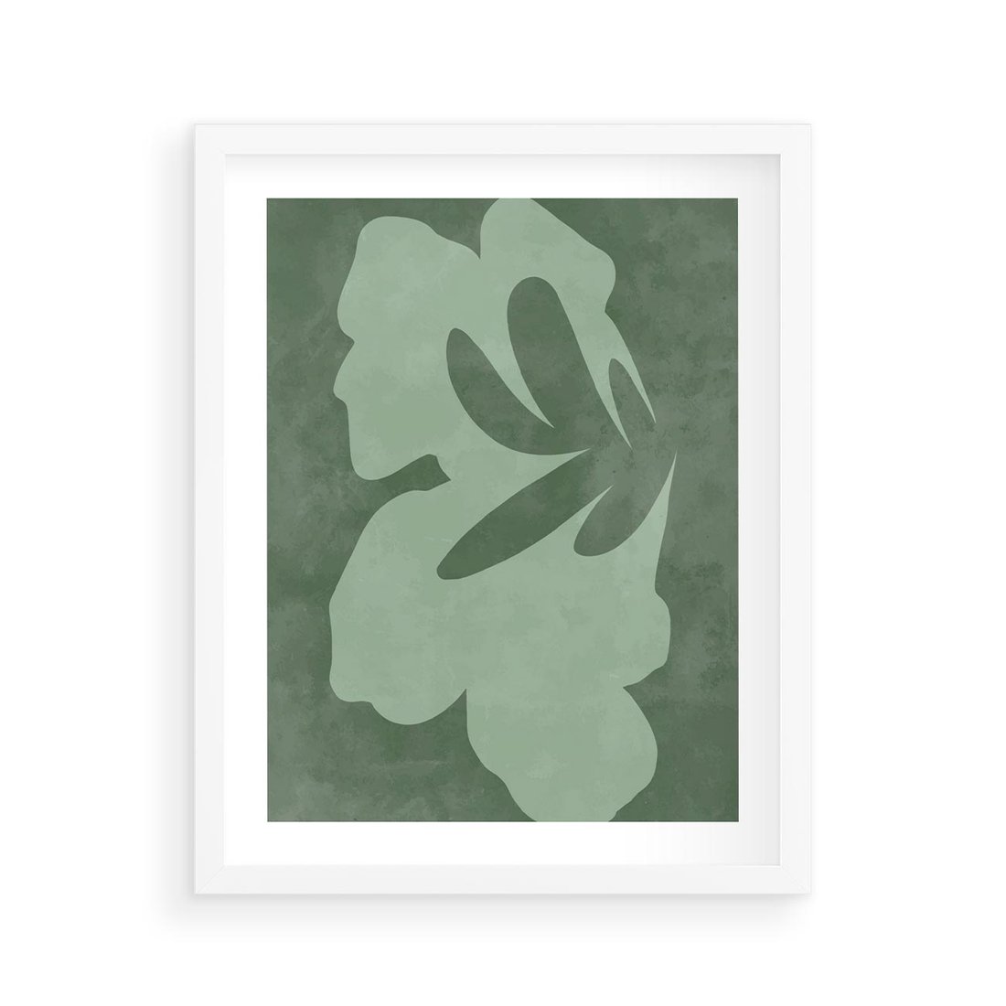 Plakat w ramie 40x50 - Kształty Zieleni - abstrakcyjny kształt, zielony plakat - rama biała