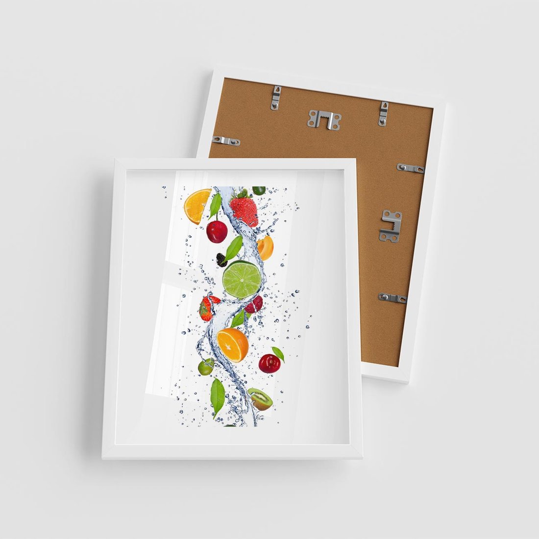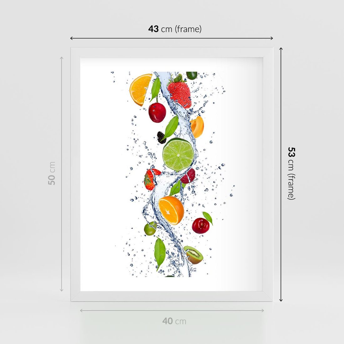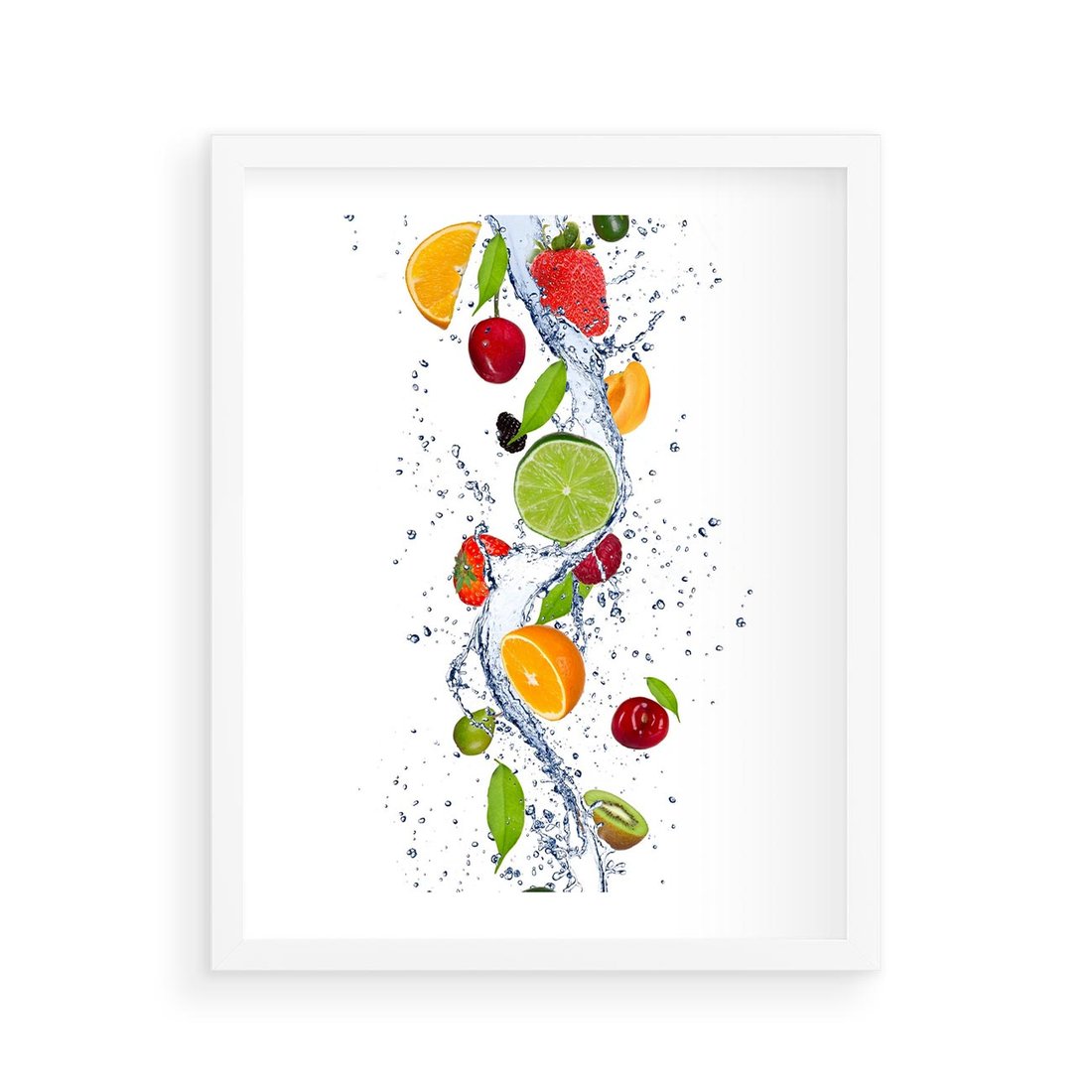 Plakat w ramie 40x50 - Kulinarne Inspiracje - owoce, woda - rama biała