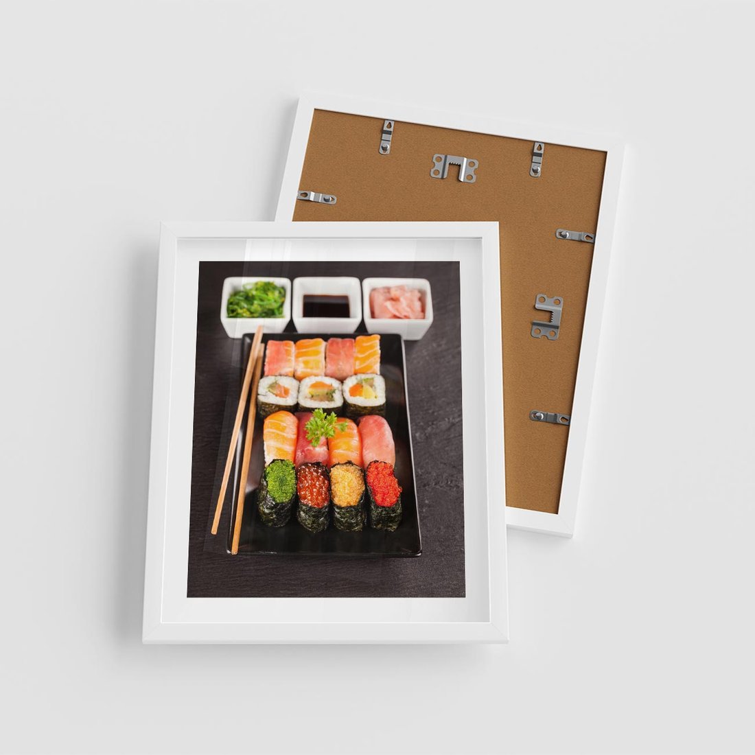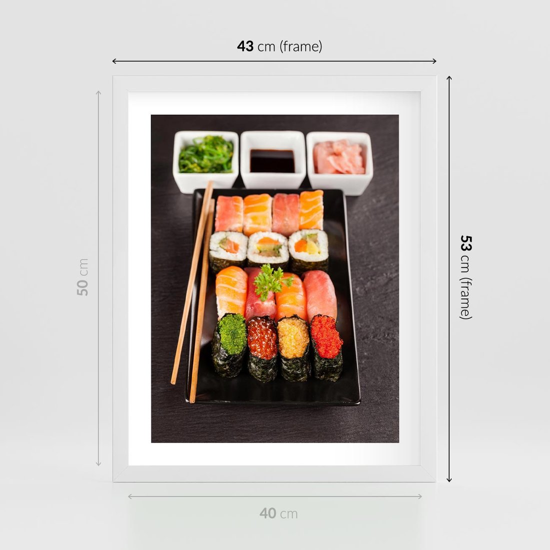 Plakat w ramie 40x50 - Kulinarne podróże do Japonii - sushi, japonia - rama biała