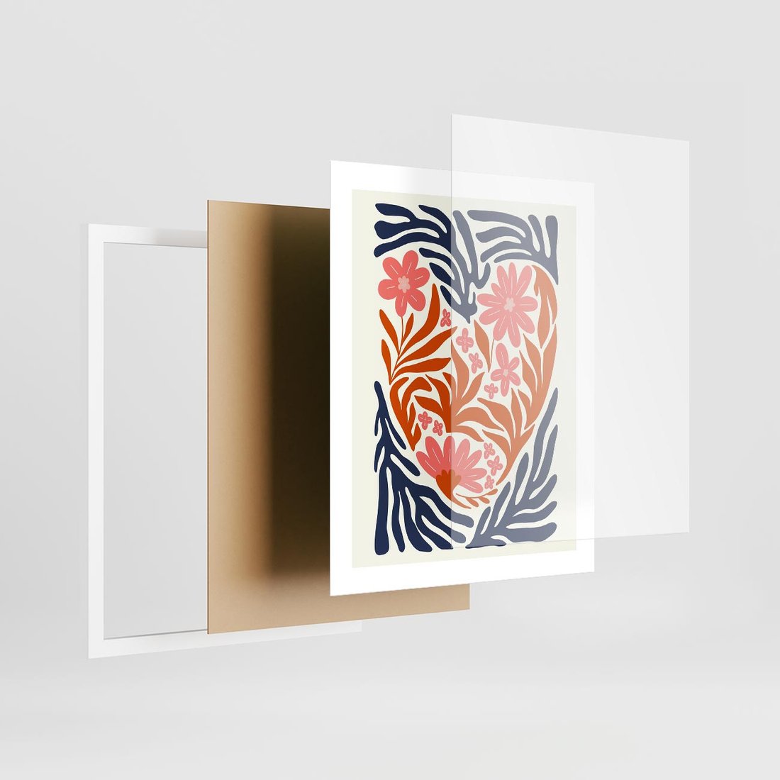Ta nowoczesna grafika w pastelowych odcieniach przenosi nas w świat kolorowych kwiatów w odcieniach granatu, różu i pomarańczy. To artystyczna podróż przez barwne ogrody, wprowadza do wnętrza dawkę radości i harmonii. To obraz, który wprost promienieje kolorami i energią natury.