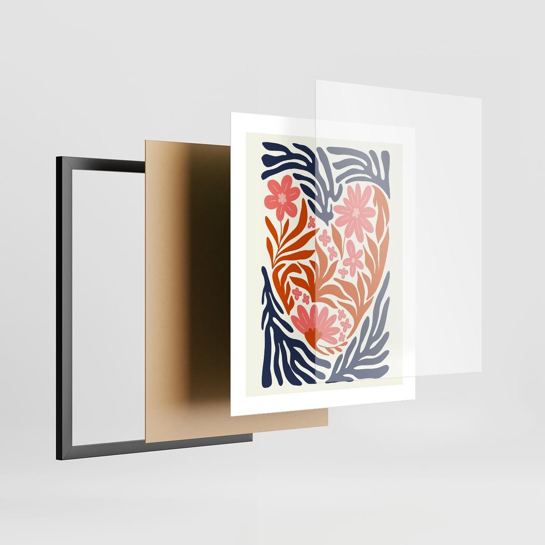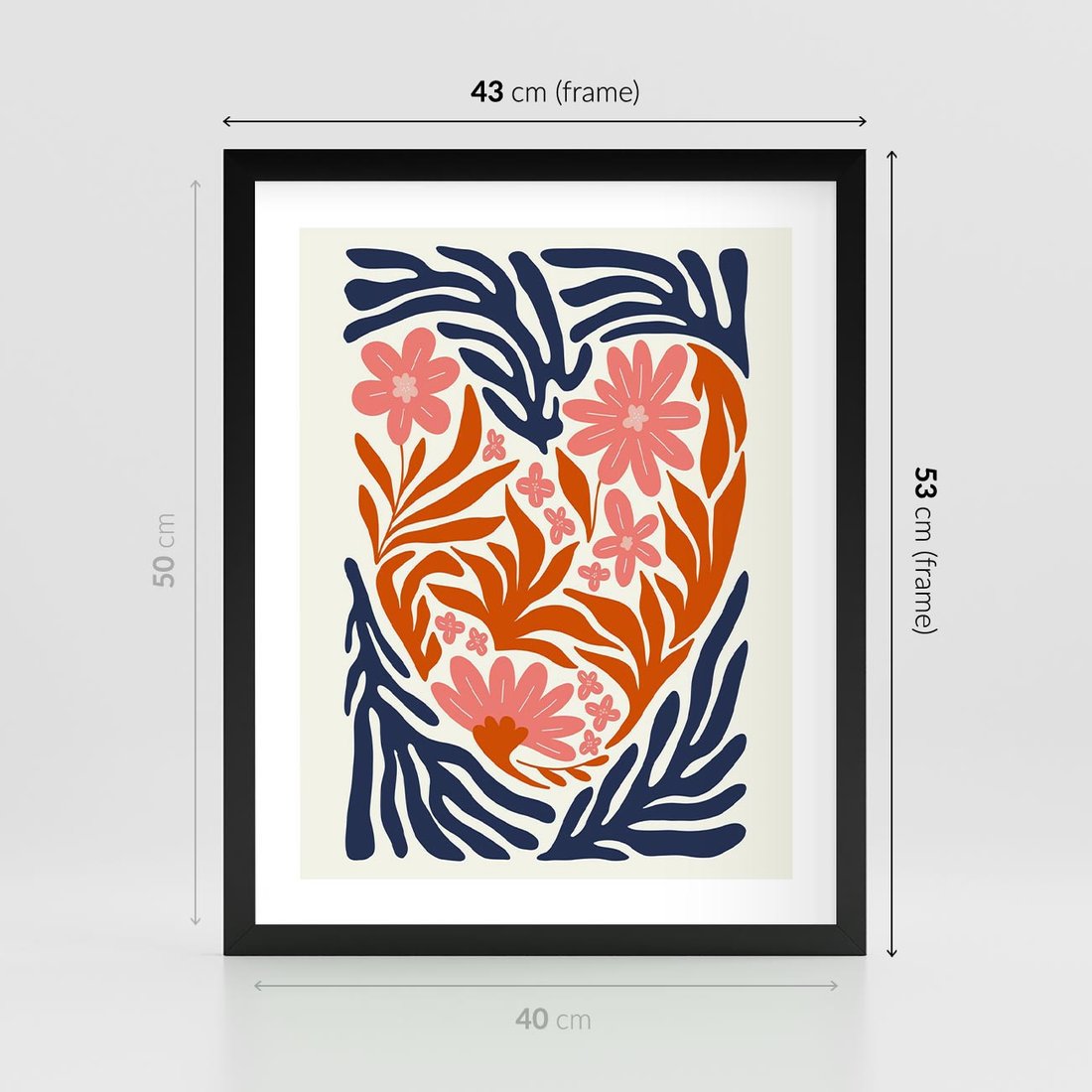 Ta nowoczesna grafika w pastelowych odcieniach przenosi nas w świat kolorowych kwiatów w odcieniach granatu, różu i pomarańczy. To artystyczna podróż przez barwne ogrody, wprowadza do wnętrza dawkę radości i harmonii. To obraz, który wprost promienieje kolorami i energią natury.