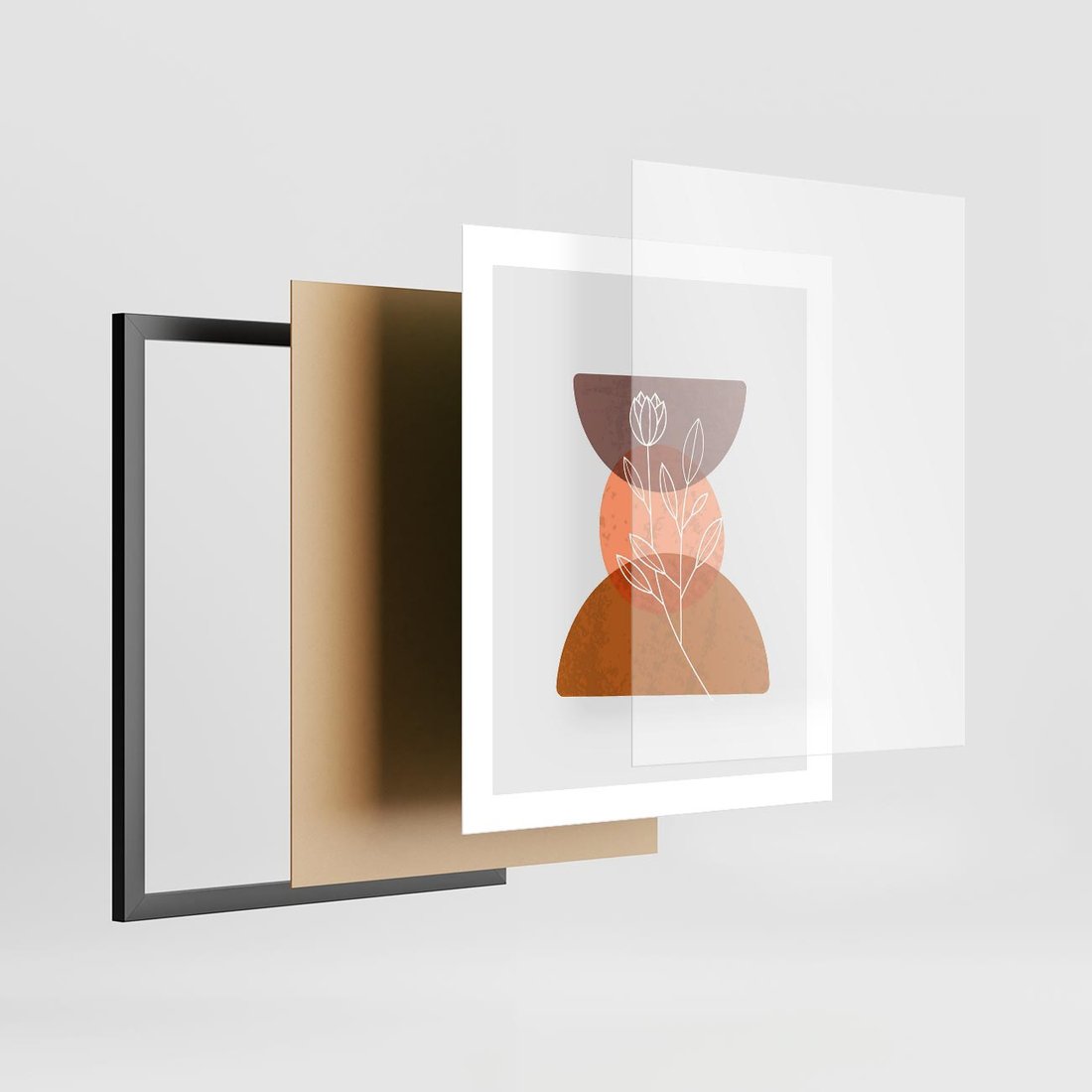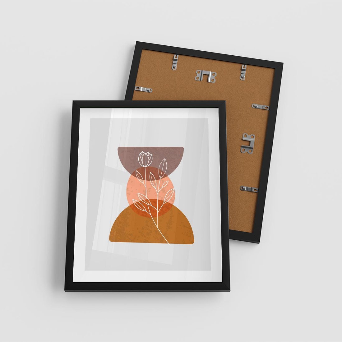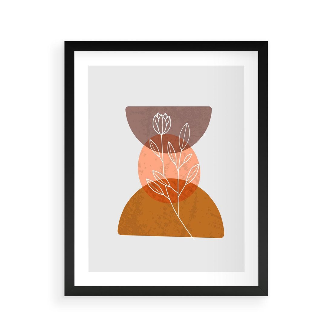Plakat w ramie 40x50 - Kwiatowa Akwarela - akwarelowe kształty, brąz - rama czarna