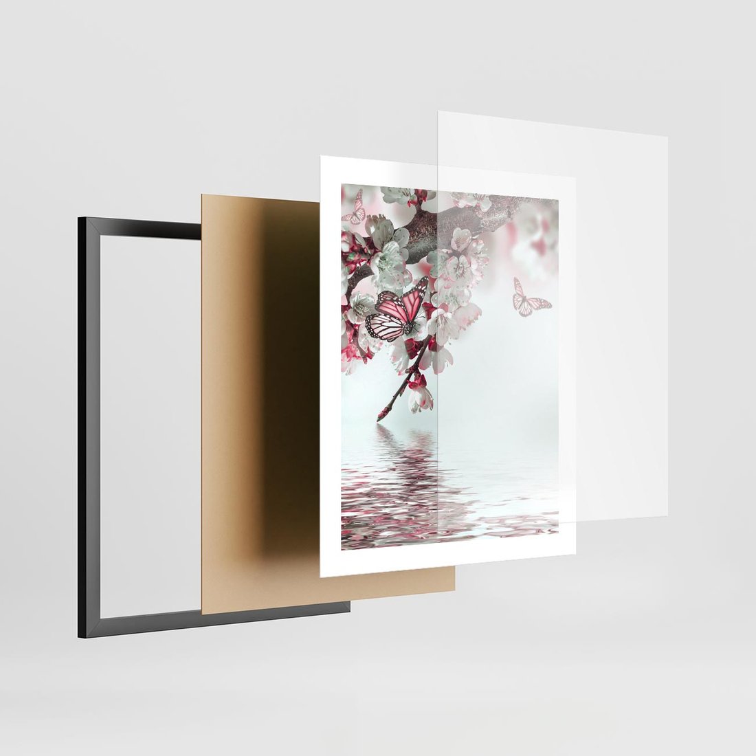 - Plakat w ramie 40x50 - Kwiatowa baśń z motylami