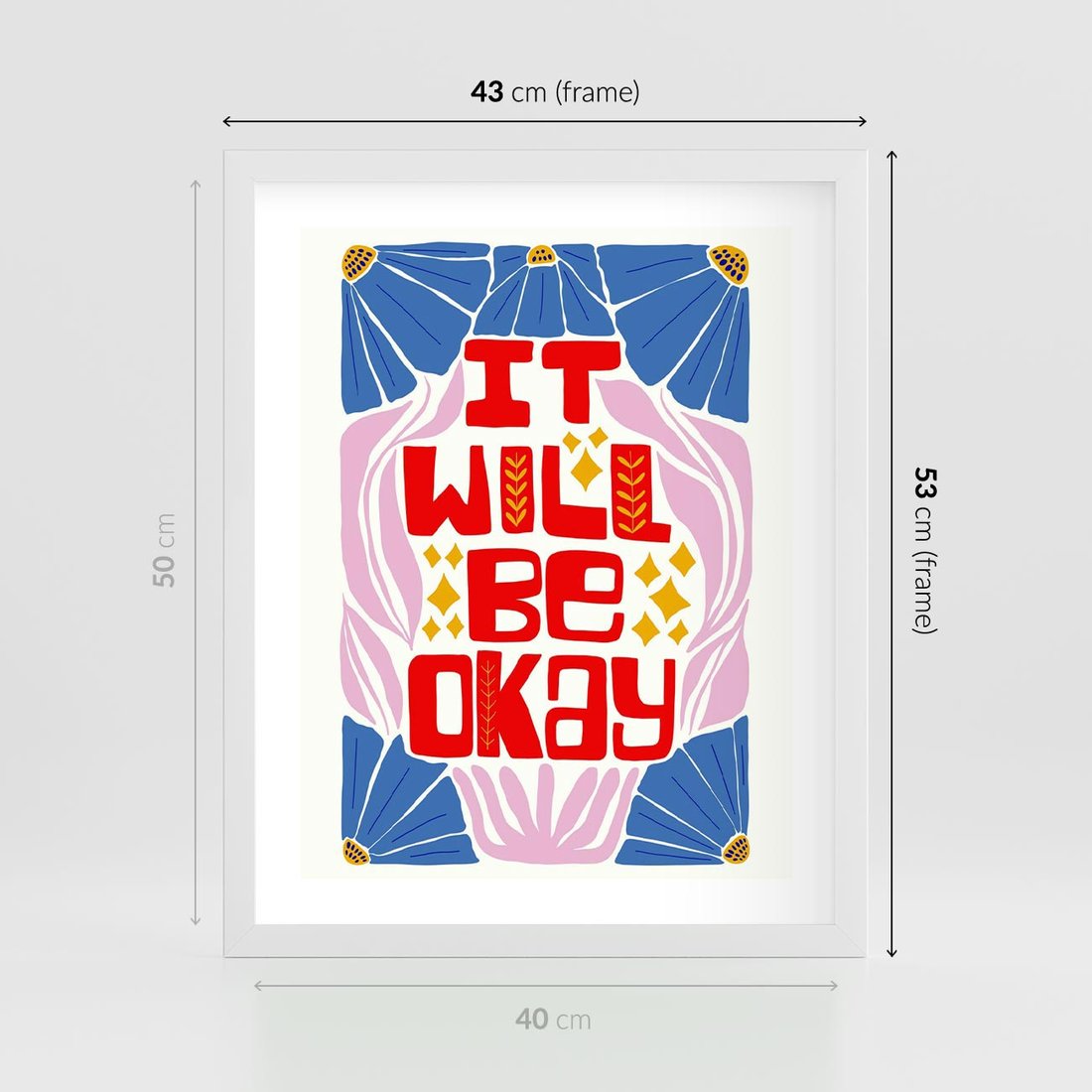 Plakat w ramie 40x50 - Kwiatowa Ekstaza - czerwona pozytywna typografia, kwiatowa kompozycja - rama biała